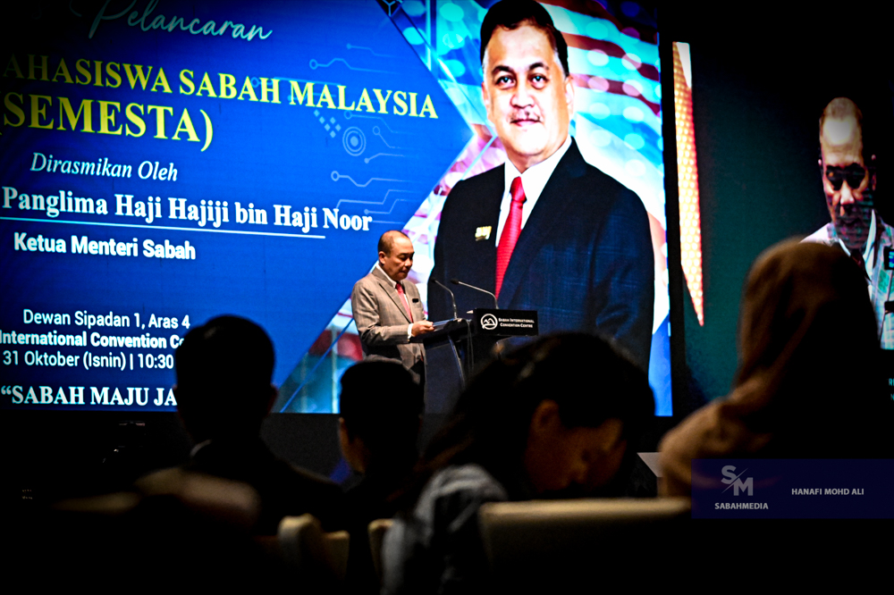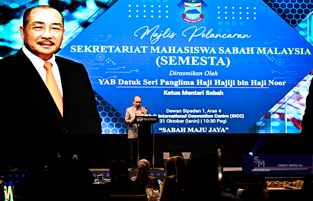 KOTA KINABALU — Ketua Menteri Sabah, Datuk Seri Hajiji Noor hari ini menyampaikan bantuan dan anugerah pendidikan di majlis perasmian Sekretariat Mahasiswa Sabah Malaysia atau singkatannya SEMESTA