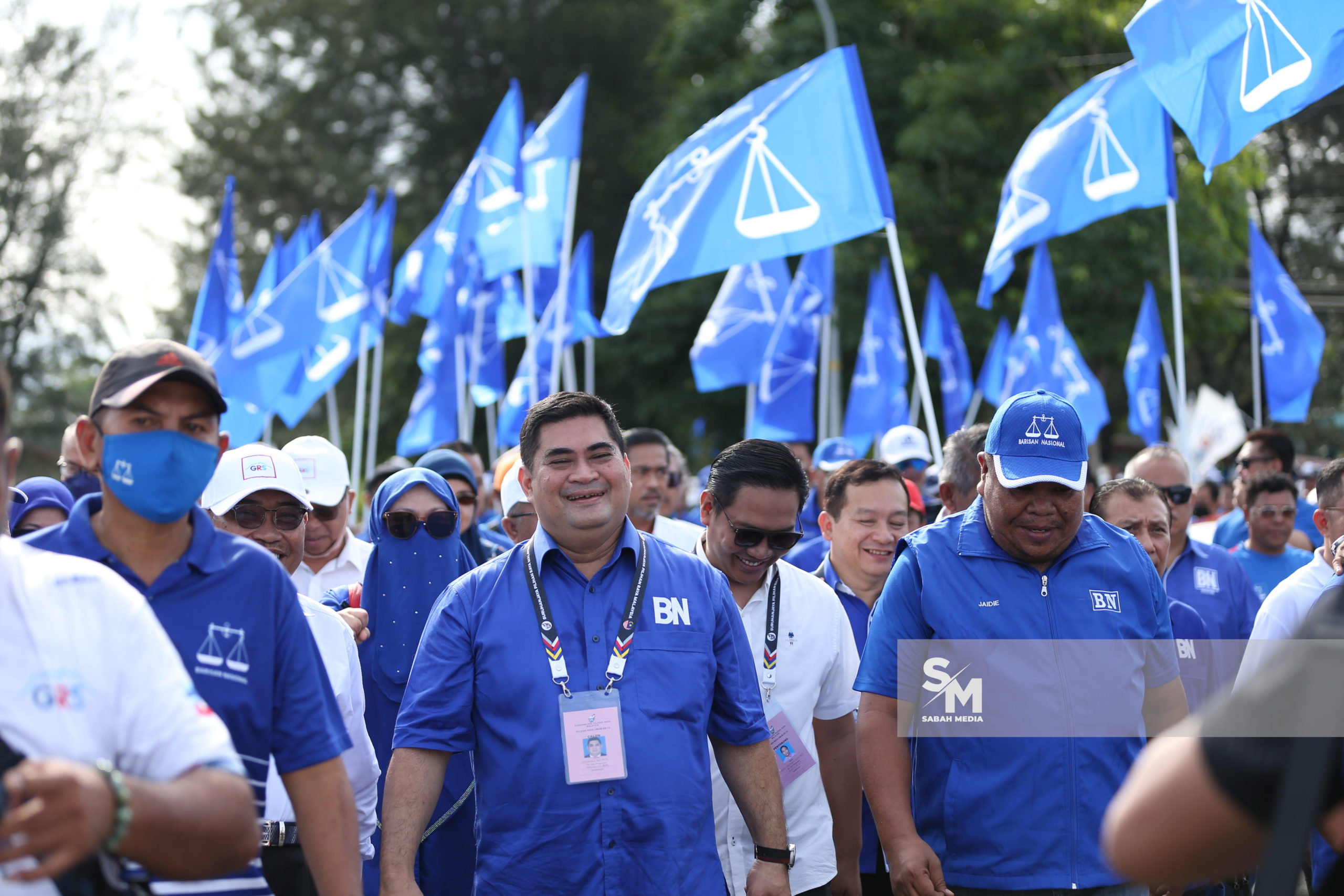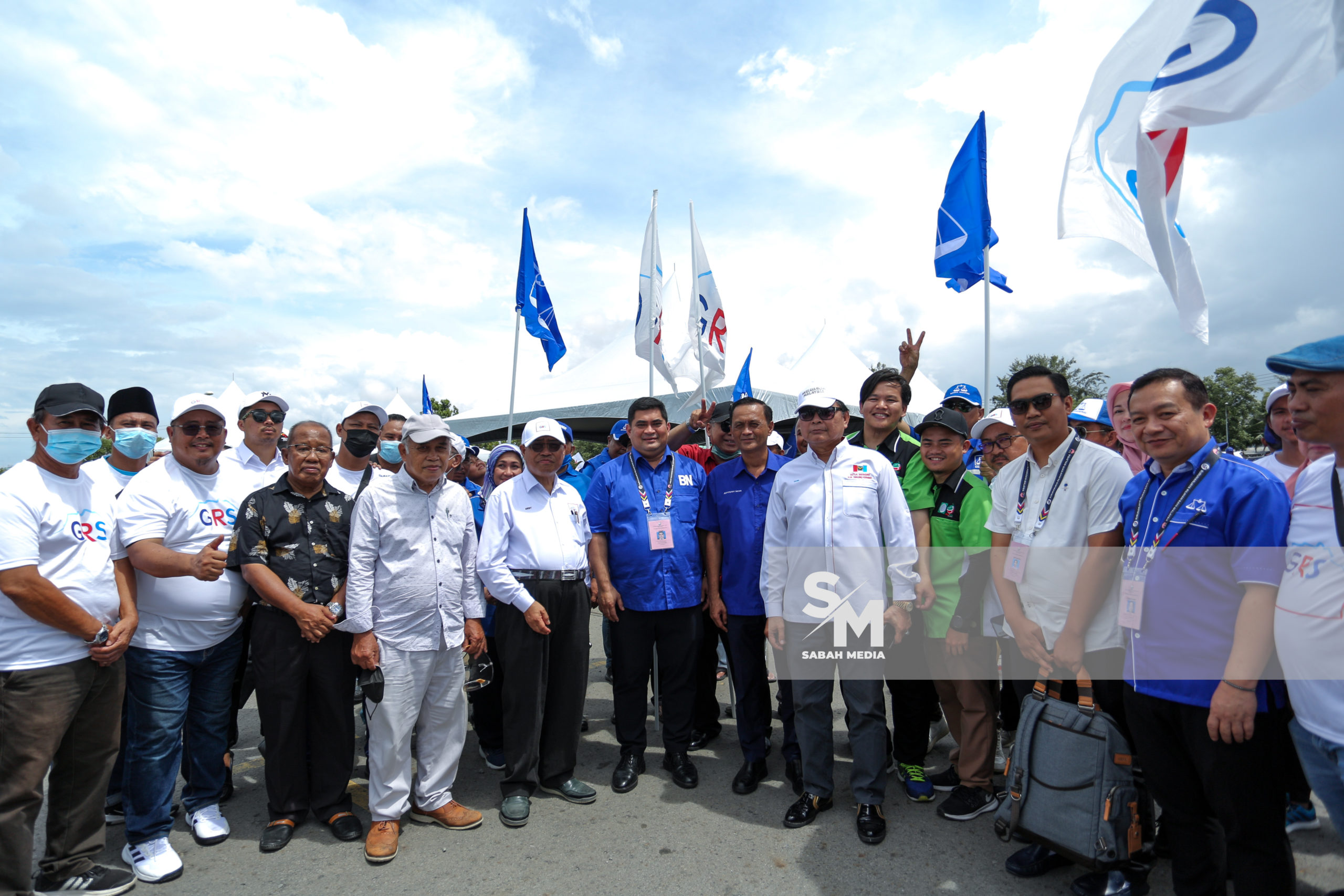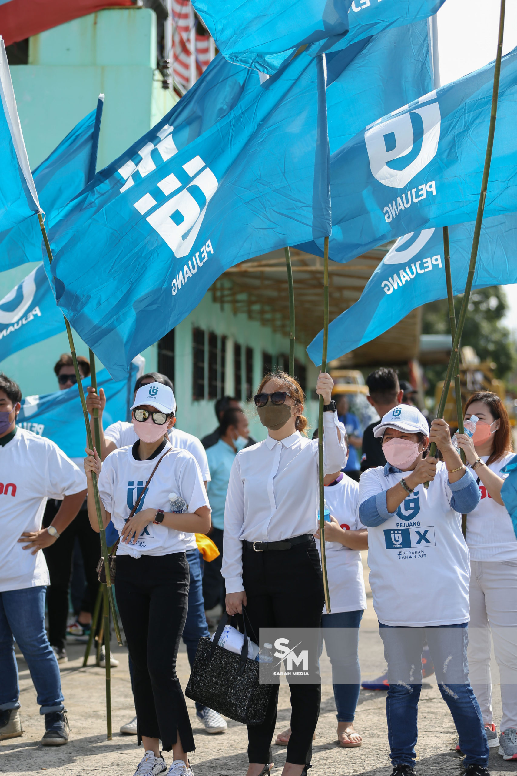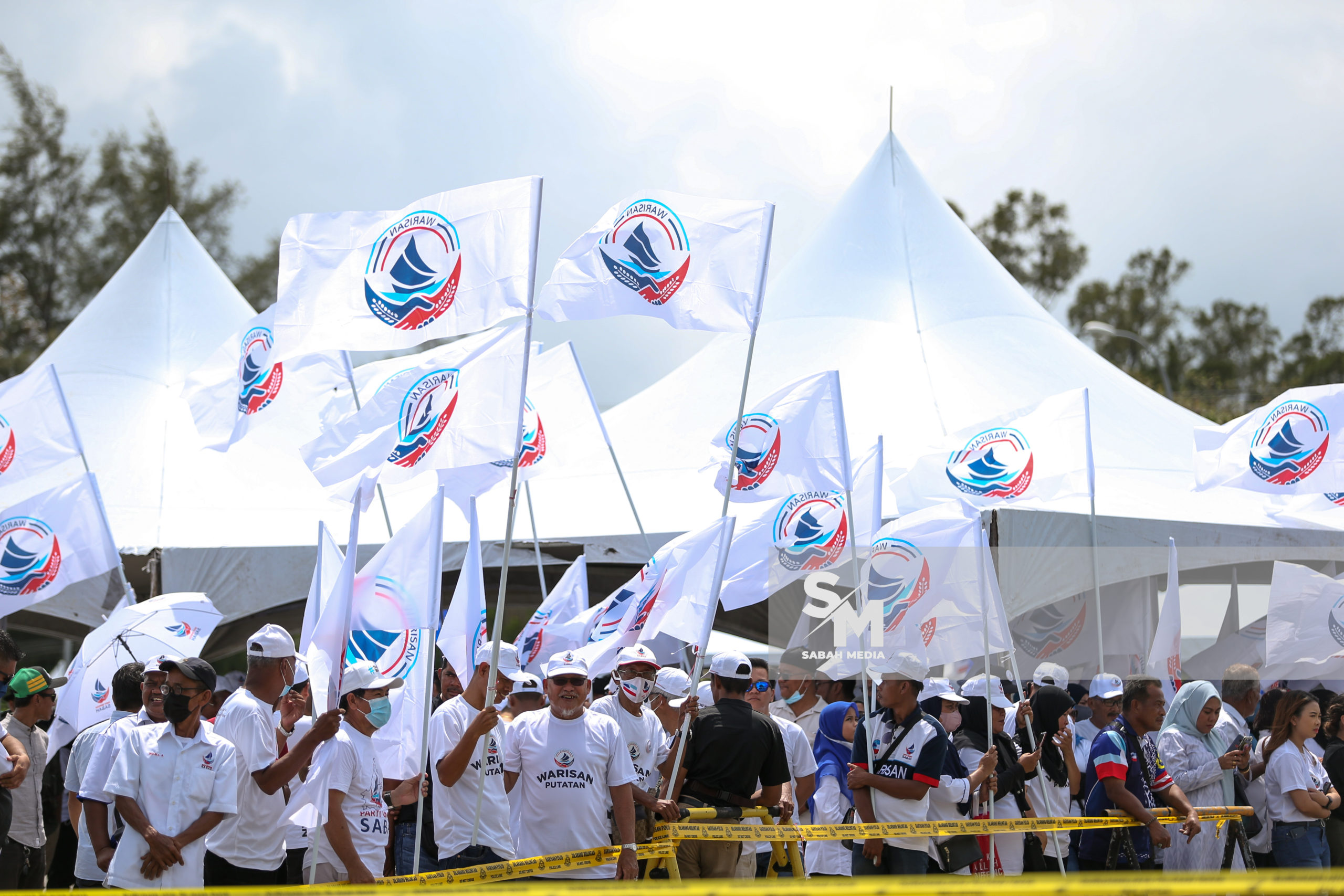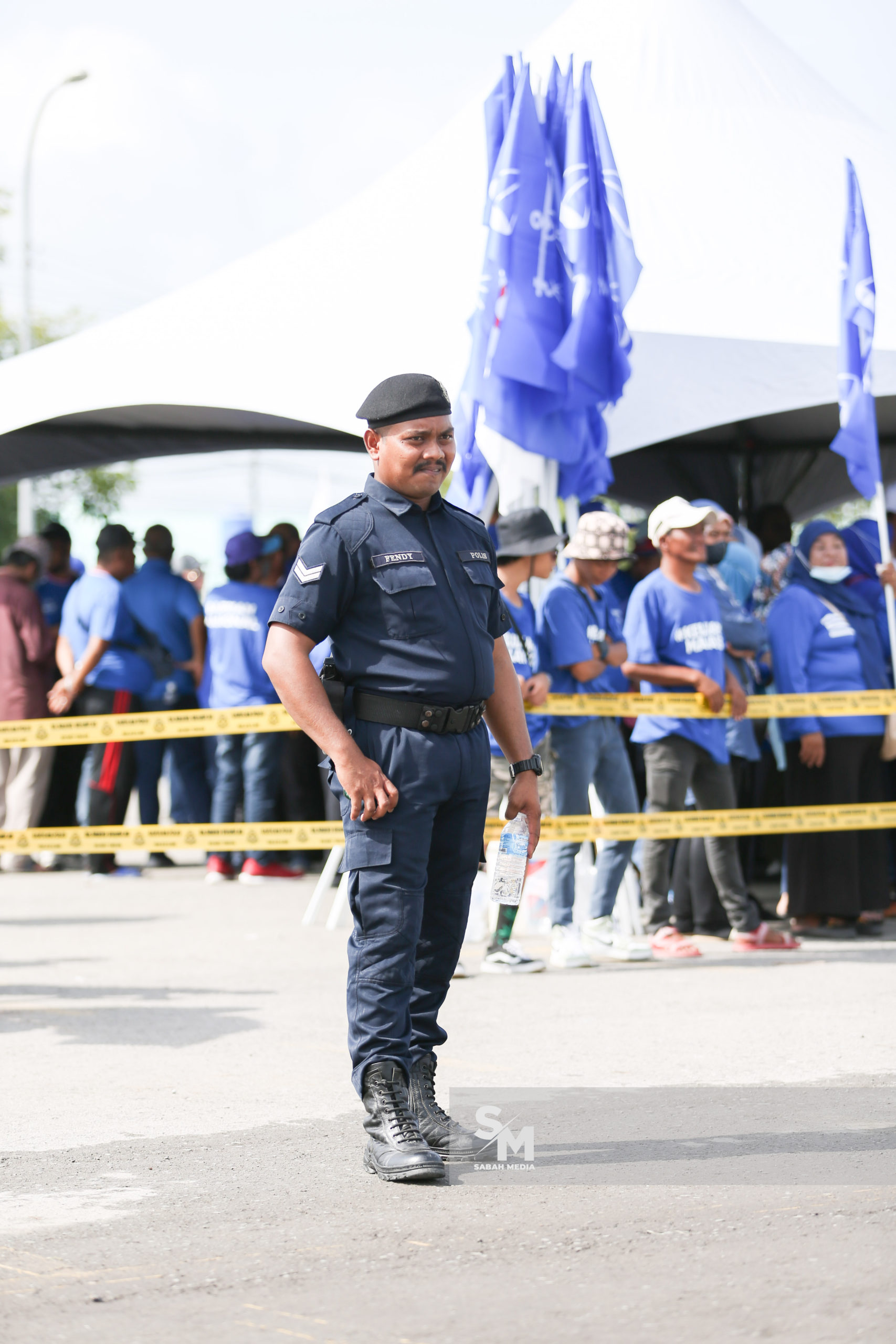 Kira-kira 1000 penyokong calon parti-parti yang bertanding hadir dengan membawa bendera parti masing-masing dan memberikan sokongan di luar perkarangan Pusat Penamaan Calon P.173 Putatan.