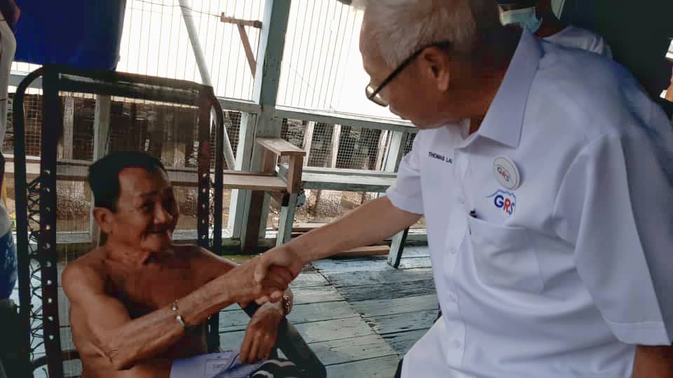 SANDAKAN : Calon Gabungan Rakyat Sabah (GRS) bagi kerusi Parlimen Sandakan Lau Chi Keong @ Thomas Lau, sempat mengimbas kenangan beliau ketika meneruskan program ramah mesra di Kampung Melayu Bumiputera (Sim-Sim), Jambatan 1 hingga 6, disini, hari ini.