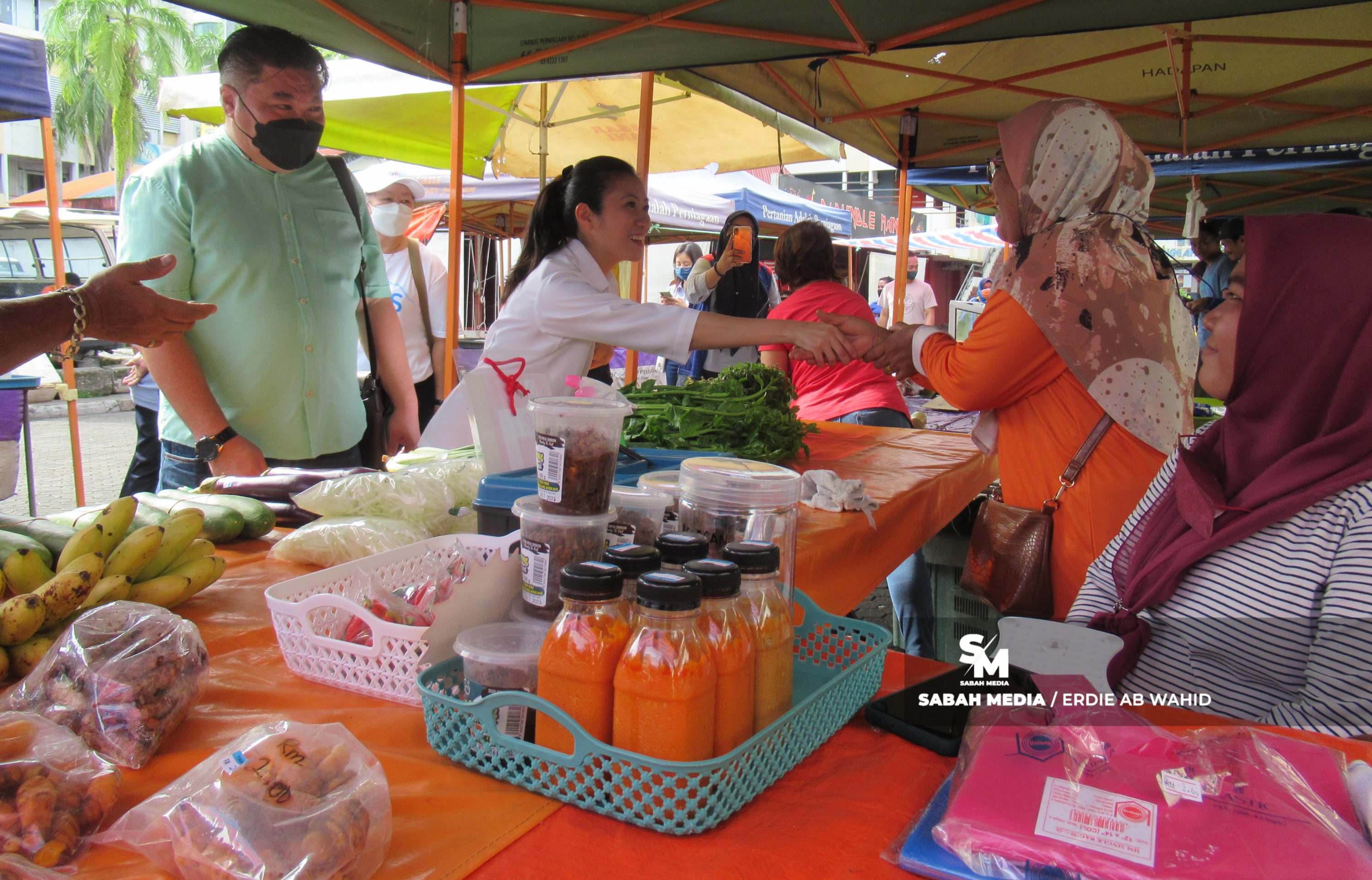 Terdahulu, calon Gabungan Rakyat Sabah (GRS) Parlimen Kota Kinabalu, Yee Tsai Yiew turut mengadakan sesi tinjauan mesra dan beramah mesra bersama rakyat di Pasar Tani Asia City, di sini hari ini.