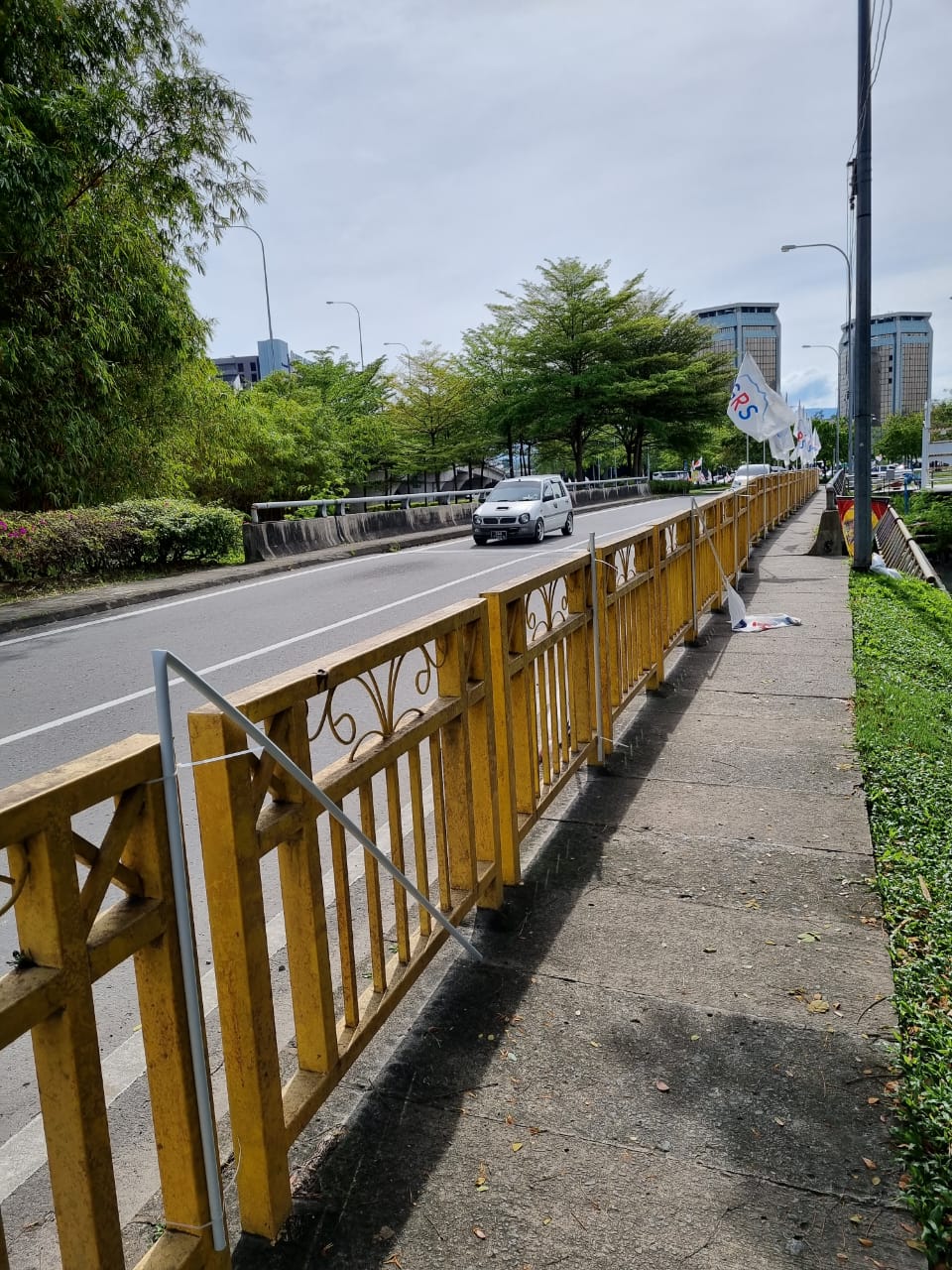 KOTA KINABALU : Lebih daripada 100 bendera, poster dan banting calon Gabungan Rakyat Sabah (GRS) Parlimem Kota Kinabalu, Yee Tsai Yiew telah dirosakkan dipercayai akibat perbuatan khianat.