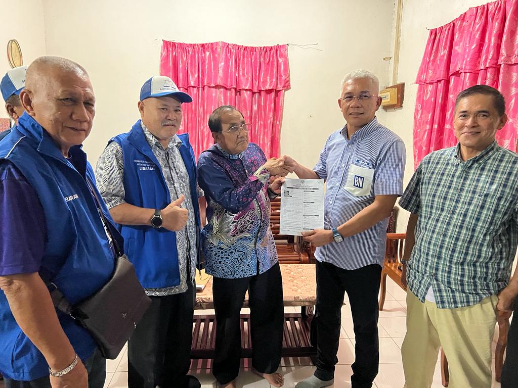 Di Taman Sri Rimba, Husain Mohamad telah menyerahkan borang keahlian melibatkan 114 orang kepada calon Barisan Nasional (BN) yang juga Ketua Bahagian Umno Libaran, Datuk Suhaimi Nasir.