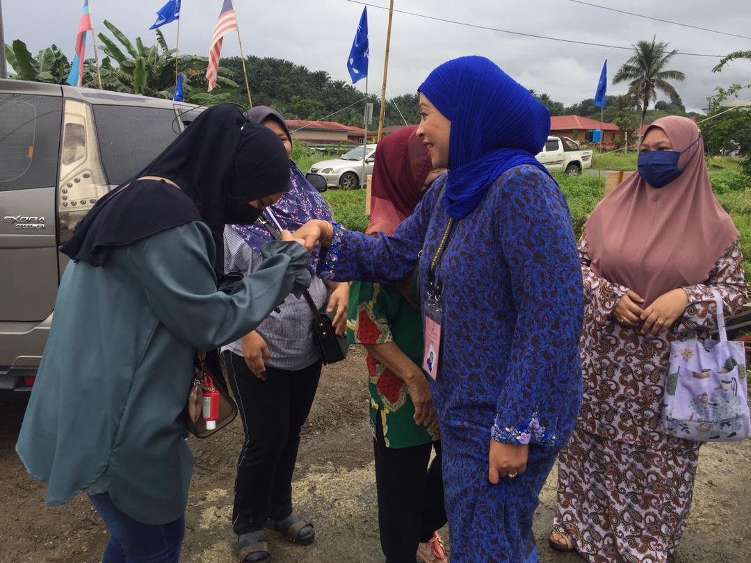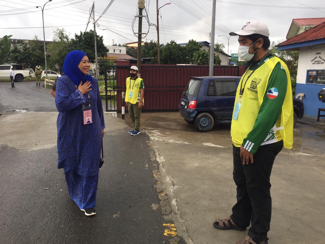 LAHAD DATU : Calon Barisan Nasional (BN) Parlimen Lahad Datu Maizatul Akmam Alawi menjadi antara calon terawal yang membuang undi di Pusat Pengundian di Sekolah Kebangsaan Pekan Tiga di sini pagi tadi.
