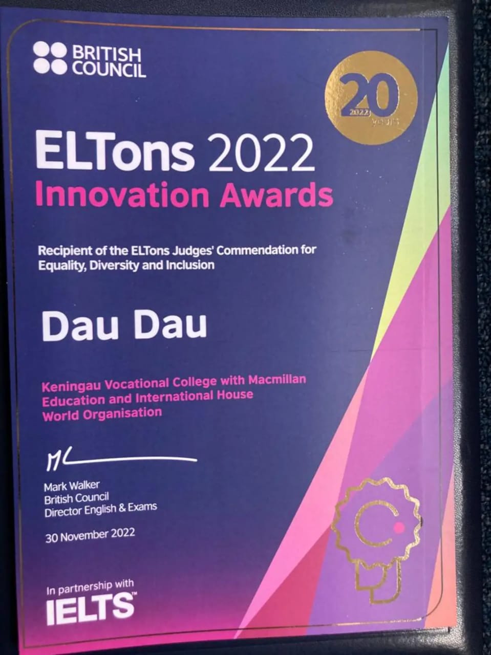 Menurut Ketua Kajian dan Inovasi, Kolej Vokasional Keningau, Dr Mohd Sirhajwan Idek yang juga salah seorang pemenang anugerah khas itu, mereka telah mendapat bimbingan dari Macmillan Education and International House World Organization yang turut diiktiraf dalam penganugerahan ini.