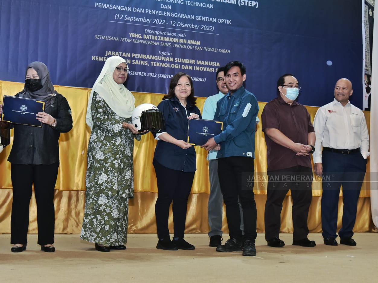 Turut disampaikan, Anugerah Pelatih Terbaik Program Pemasangan dan Penyelenggaraan Gentian Optik dan Anugerah Pelatih Terbaik Mobile Air Conditioning Technician masing-masing kepada Mohd Syahmi Akmal Samreh dan Fazir Hassim.