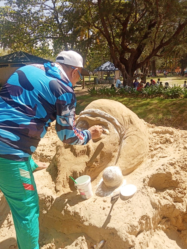 Menurut Benjamin, beliau menyiapkan arca pasir tersebut selama dua hari bermula 16 Disember lalu dan akan datang semula ke lokasi berkenaan untuk membaiki mana-mana yang perlu bagi mengekalkan arca itu sehingga Hari Natal.