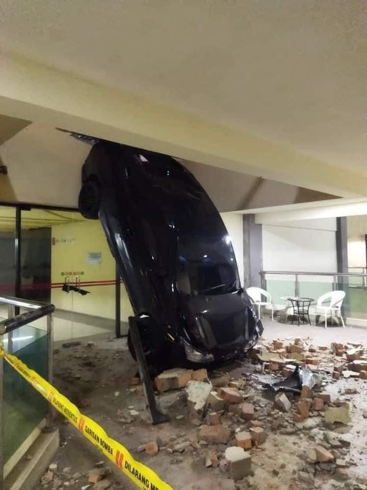 Katanya, pasukan Bomba tiba di lokasi kejadian mendapati terdapat sebuah kenderaan jenis Toyota Vios terbabas di tingkat 3 tempat letak kenderaan lalu melanggar tembok dan terjunam ke tingkat 2 di Kompleks Star City, Kota Kinabalu.