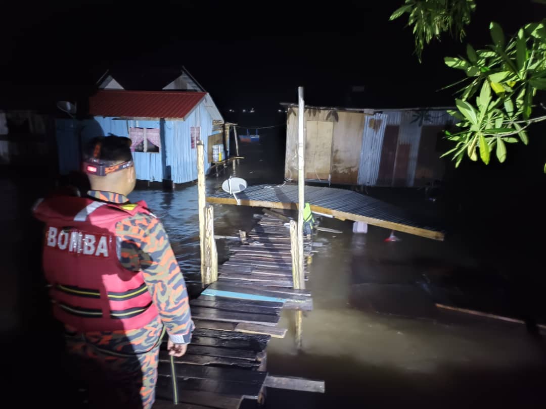 “Pasukan Bomba yang tiba di lokasi berkenaan melaporkan terdapat tiga buah rumah atas air mengalami kerosakan di bahagian lantai termasuk sebuah rumah mengalami kerosakan di bahagian beranda rumah akibat dipukul ombak ekoran daripada fenomena air pasang besar,” katanya dalam kenyataan media hari ini.