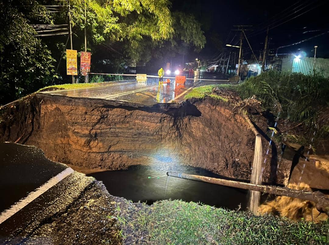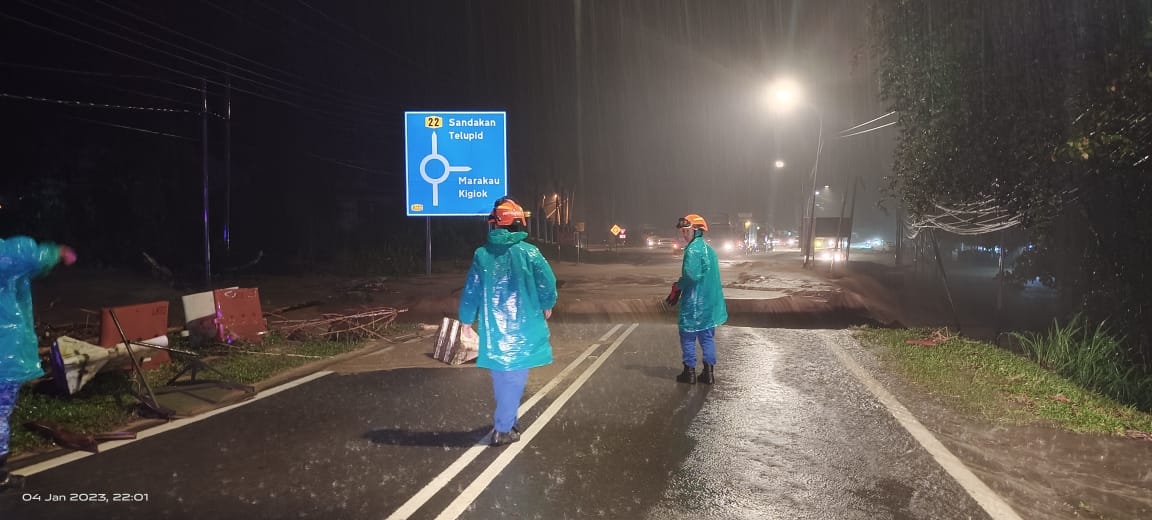 “Untuk makluman, jalan Kota Kinabalu-Sandakan, Ranau (Jalan Riverside) di KM 109.378 Ranau ditutup serta merta bermula hari ini akibat hujan lebat mengakibatkan kegagalan pembentung dan jalan putus yang membahayakan laluan.