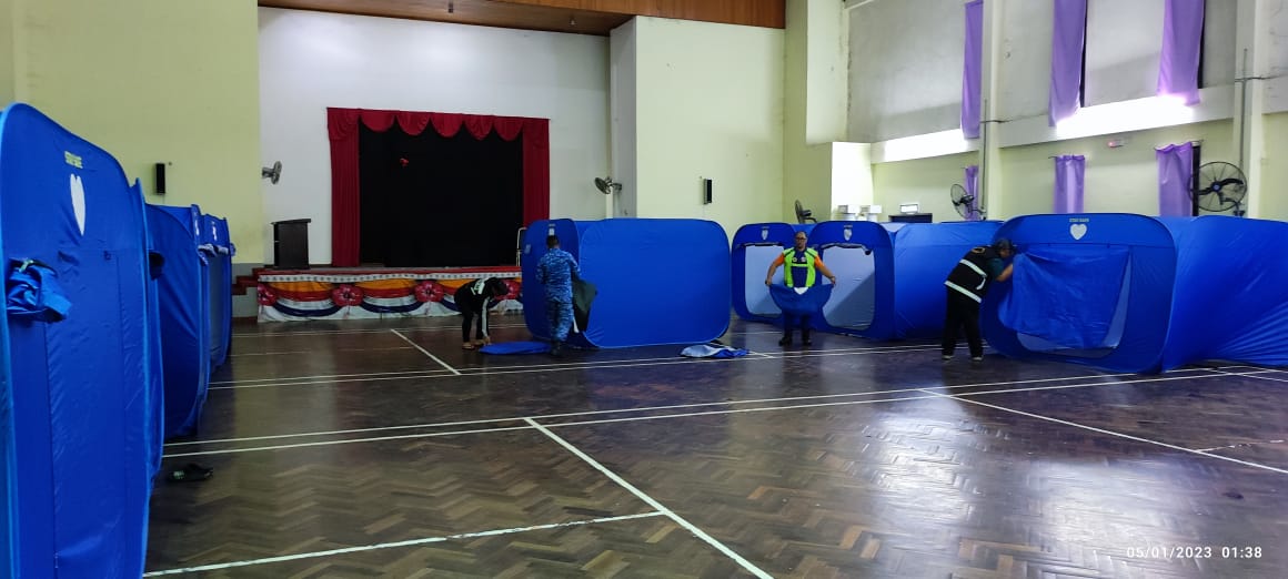 RANAU : Sebuah pusat pemindahan sementara (PPS) dibuka di Dewan Ibu Pejabat Polis Daerah Ranau di sini jam 12.45 tengah malam tadi.