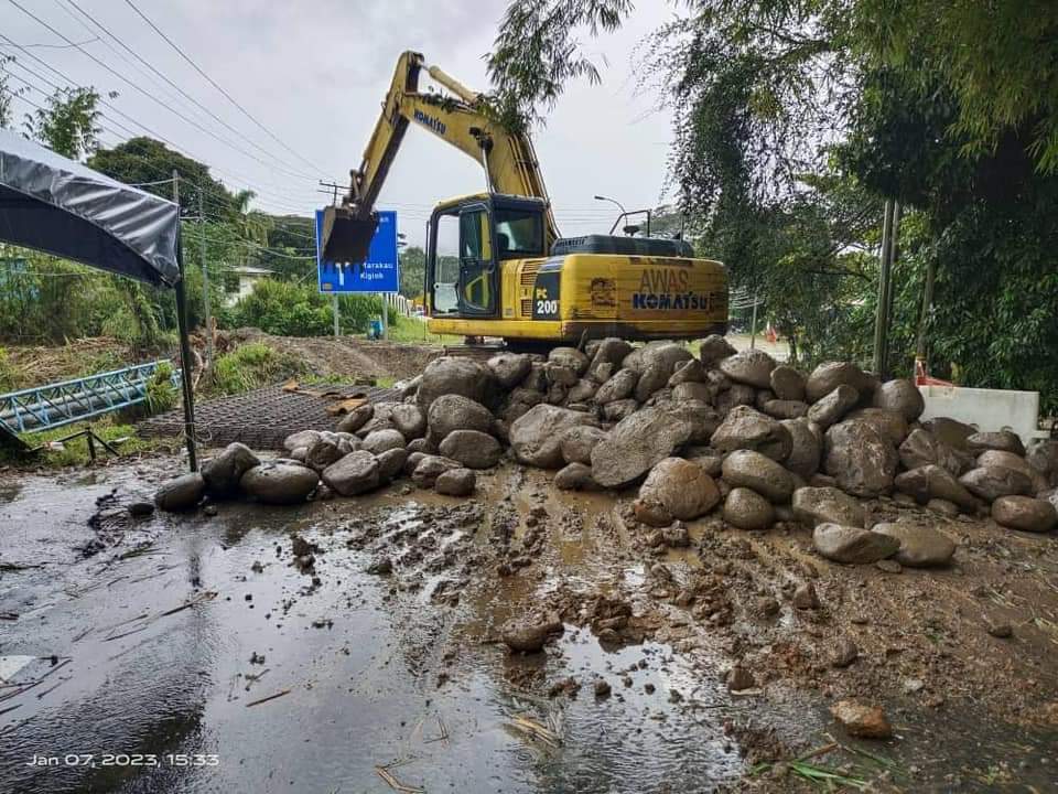 Jumain berkata, kerja pelebaran jalan di laluan alternatif Kampung Sinarut Baru – Kampung Tagudon Baru masih diteruskan dimana pihak konsesi akan melaksanakan kerja-kerja tersebut pada waktu malam sahaja.