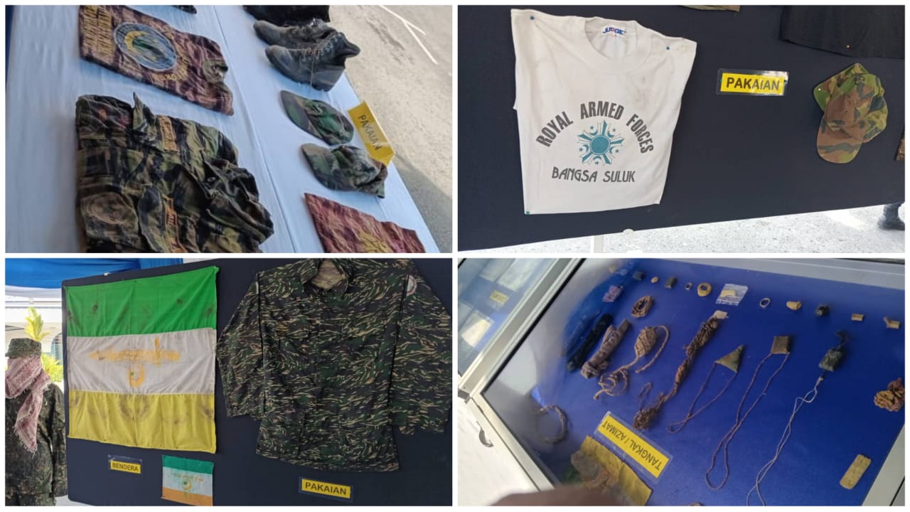 LAHAD DATU: Sebanyak 438 barang kes Op Daulat pada 2013 milik kumpulan pengganas Sulu diserah kepada Muzium Polis Diraja Malaysia (PDRM) Sabah hari ini untuk disimpan sebagai bahan peninggalan sejarah.