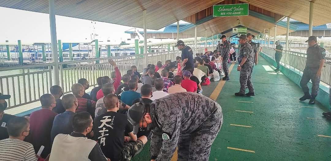 KOTA KINABALU: Seramai 107 Pendatang Asing Tanpa Izin (PATI) yang ditahan di Depot Imigresen Tawau dan Sandakan dipindahkan dari Pelabuhan Tawau untuk balik ke negara asal, semalam.