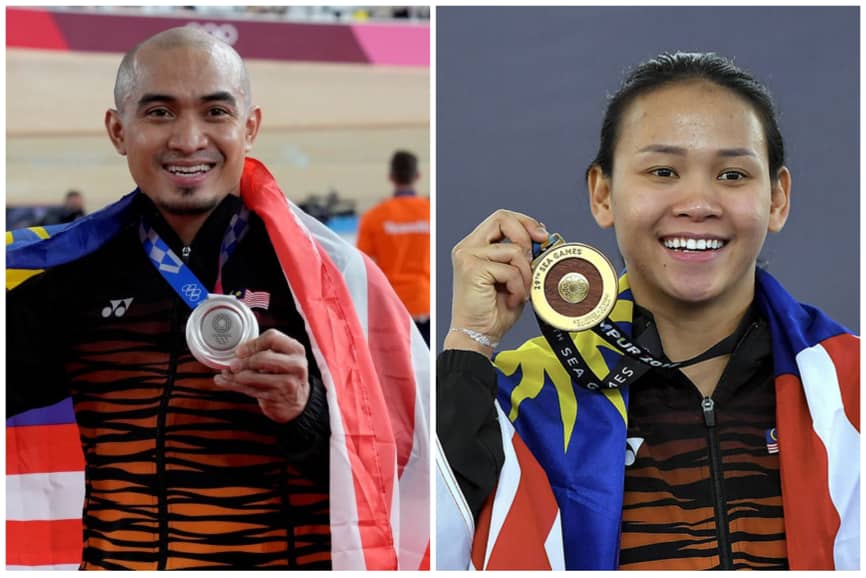 Azizulhasni berjaya meraih gelaran Olahragawan Kebangsaan ASN bagi edisi 2009, 2010, 2017 dan 2019/2020 manakala Pandelela pernah dianugerahkan Olahragawati Kebangsaan pada 2013 dan 2015. – BERNAMA