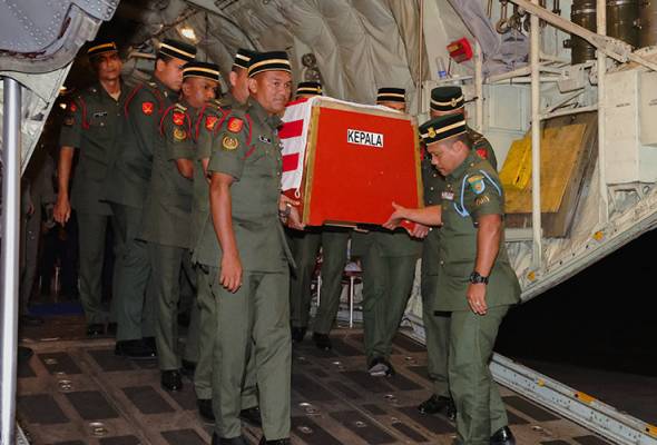 Ketibaan mayat mendiang, yang diterbangkan dari Pangkalan Tentera Udara Subang dengan pesawat Hercules C130 Tentera Udara Diraja Malaysia (TUDM) pada 5.30 petang semalam, disambut Penolong Pegawai Pemerintah Batalion Ke-22 Rejimen Askar Melayu Diraja (RAMD) Kem Sri Kinabatangan Mejar Shah Wira Ma’rof.