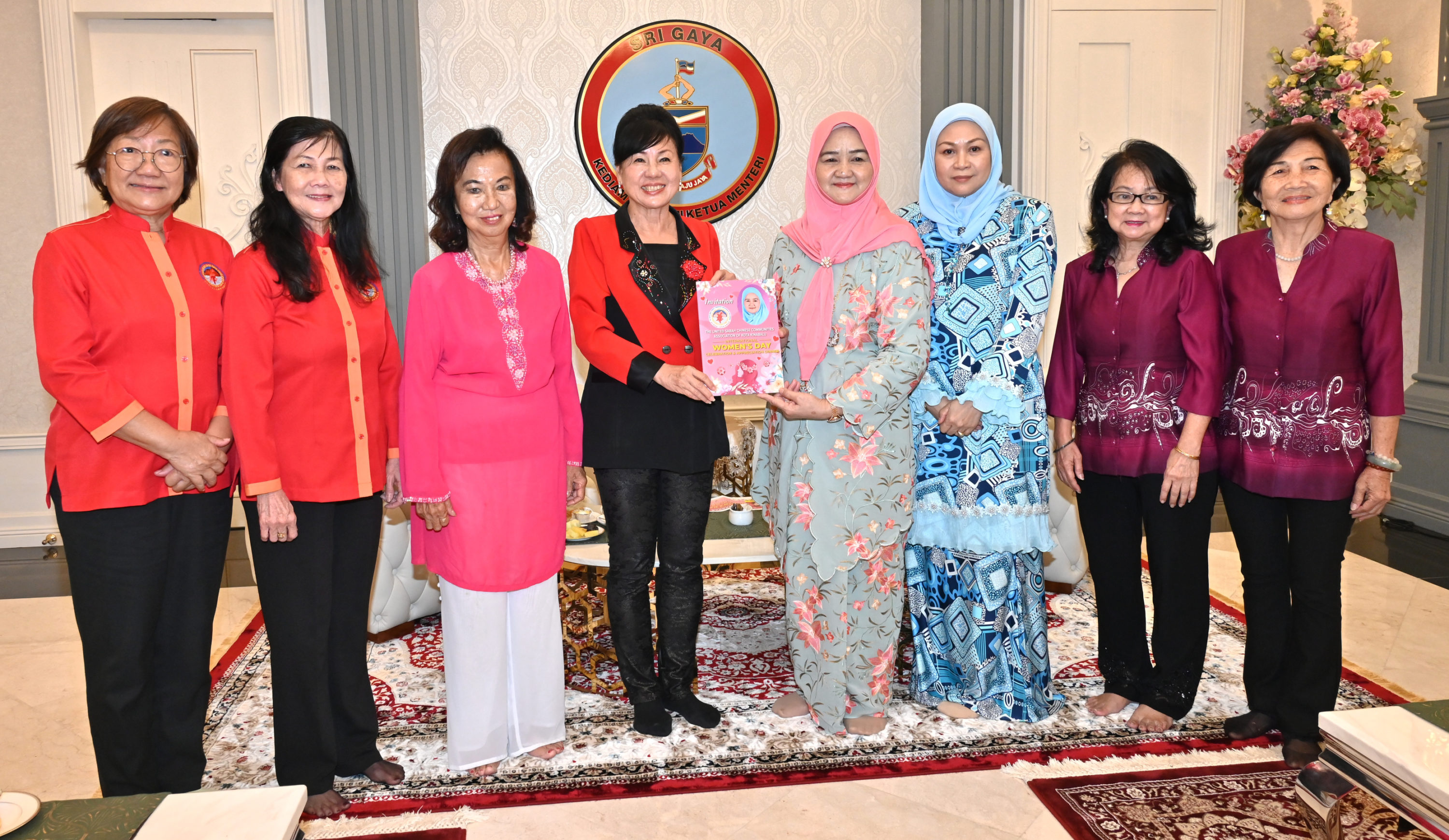 Isteri Ketua Menteri, Datin Seri Panglima Datuk Hajah Juliah Salag menerima jemputan daripada Presiden Persatuan Masyarakat Cina Bersekutu Sabah Di Kota Kinabalu (USCCAKK), Datuk Susan Wong Siew Guen semasa menerima kunjungan hormat rombongan USCCAKK di kediaman rasmi Ketua Menteri di Sri Gaya, Kota Kinabalu, hari ini.Foto ihsan JKM