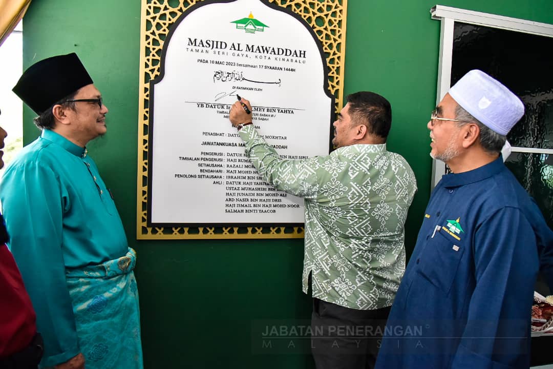 Beliau berkata demikian kepada media selepas merasmikan Masjid Al Mawaddah Taman Seri Gaya di sini semalam.