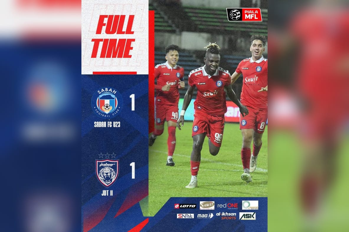 Kota Kinabalu : Sabah FC sekadar mencatat keputusan seri 1-1 pada aksi perlawanan Piala MFL kumpulan A menentang Johor Darul Ta’zim (JDT) II di Stadium Likas malam ini.