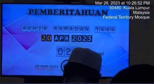 “Cerapan Hilal Syawal bagi tahun ini (1444H) adalah pada petang hari Khamis, 29 Ramadan 1444H bersamaan 20 April 2023.