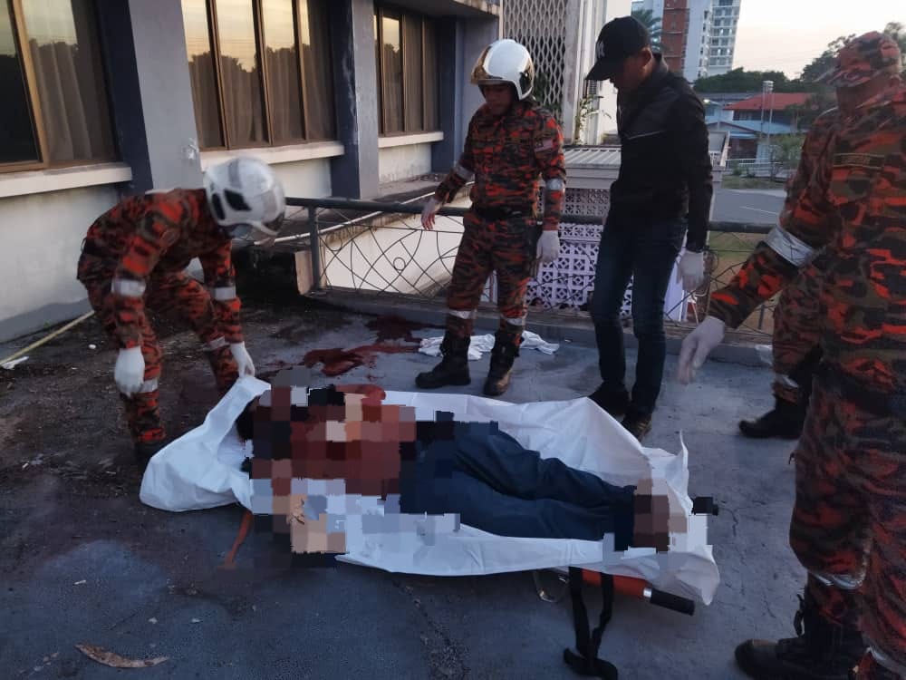“Setibanya pasukan bomba di lokasi kejadian mendapati seorang mangsa dipercayai terjatuh dari tingkat lima ke beranda tingkat satu bangunan.