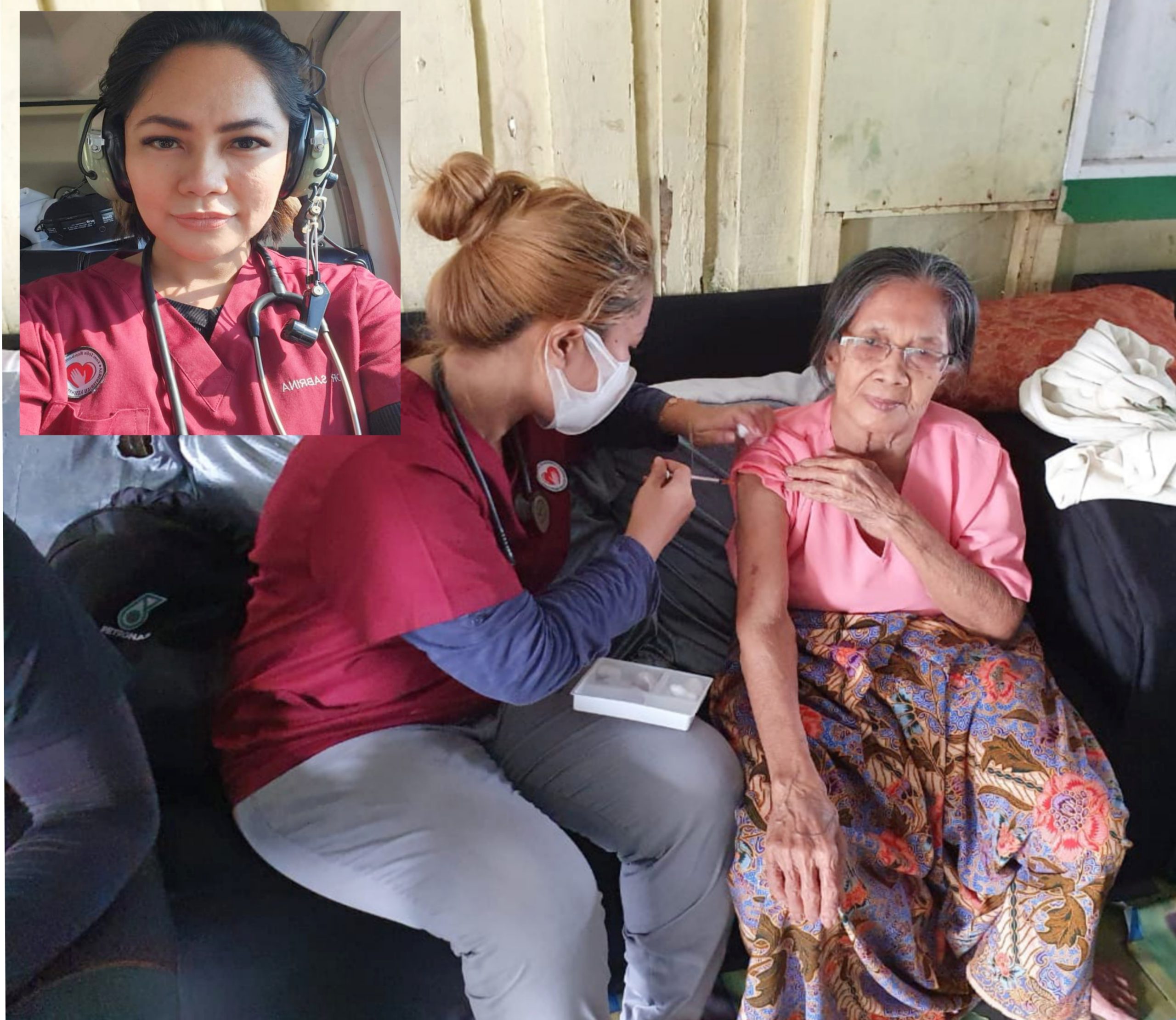Dr Sabrina laksana pemberian vaksin Covid-19 di Pulau Gaya. – Foto ihsan Dr Sabrina