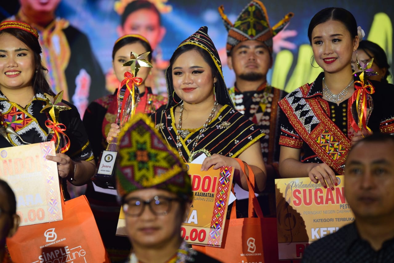 Tamparuli : Gadis kelahiran Kiulu, Jayvianne Joisin berjaya dinobatkan sebagai juara Pertandingan Sugandoi Kaamatan Peringkat Daerah Tuaran bagi kategori Terbuka semalam.