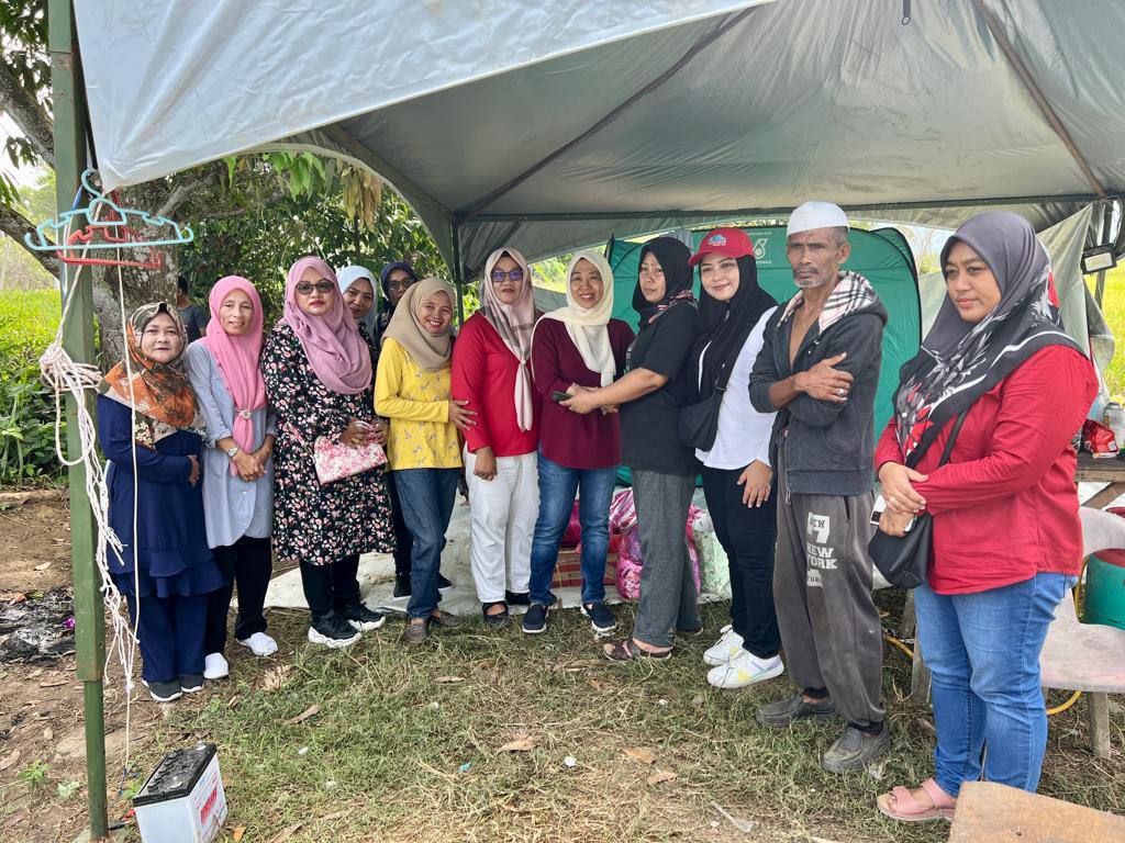 KOTA BELUD: EXCO Wanita Parti Gagasan Rakyat Sabah (Gagasan Rakyat) Hasrina Wati Datuk Golkhan bersama Ketua Wanita Gagasan Rakyat Dewan Undangan Negeri (DUN) Tempasuk Nurul Fadzilah Noordin melawat mangsa kebakaran di Kampung Kesapang, Kota Belud kelmarin.