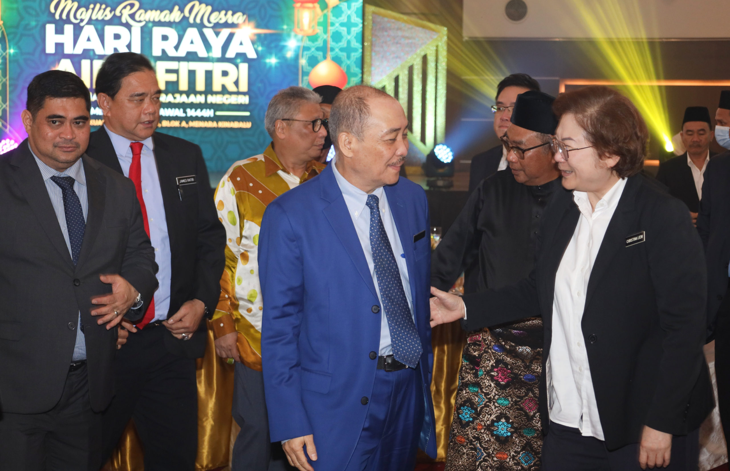 KOTA KINABALU: Ketua Menteri Datuk Seri Hajiji Noor dan ahli Kabinet Negeri menghadiri Majlis Hari Raya Aidilfitri yang dihoskan oleh Setiausaha Kerajaan Negeri Datuk Seri Sr Safar Untong di Menara Kinabalu hari ini.