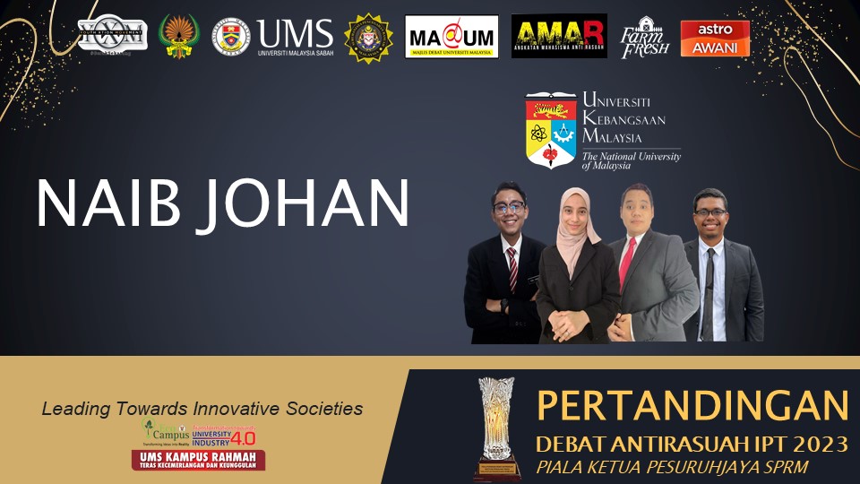 “Tema usul perdebatan yang dibahaskan adalah berkaitan isu-isu rasuah dan integriti. Pertandingan debat ini adalah medan terbaik untuk mengulas isu penting yang sentiasa menjadi sebutan di negara kita,” katanya.