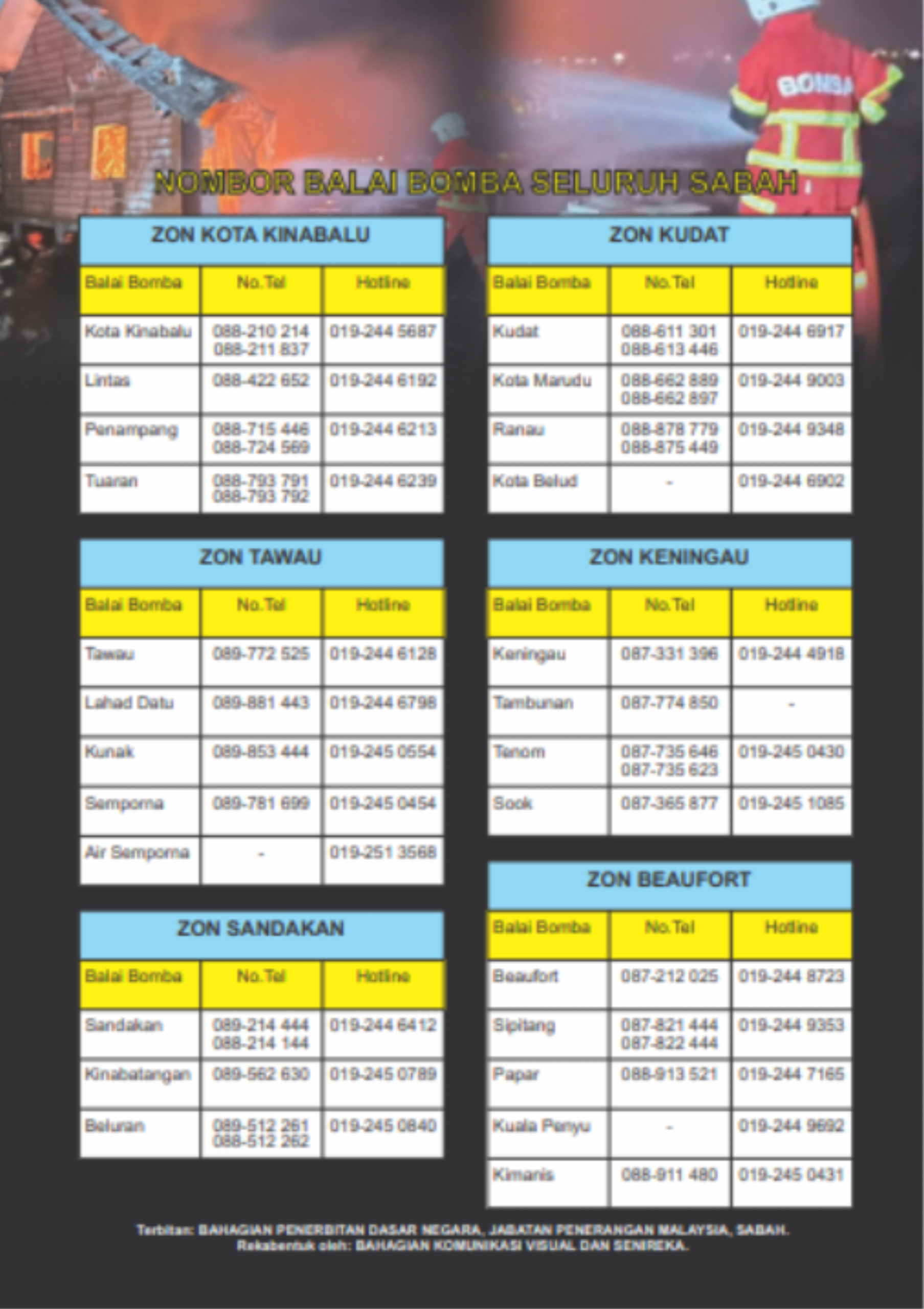 Nombor Talian Balai Bomba dan Penyelamat Negeri Sabah