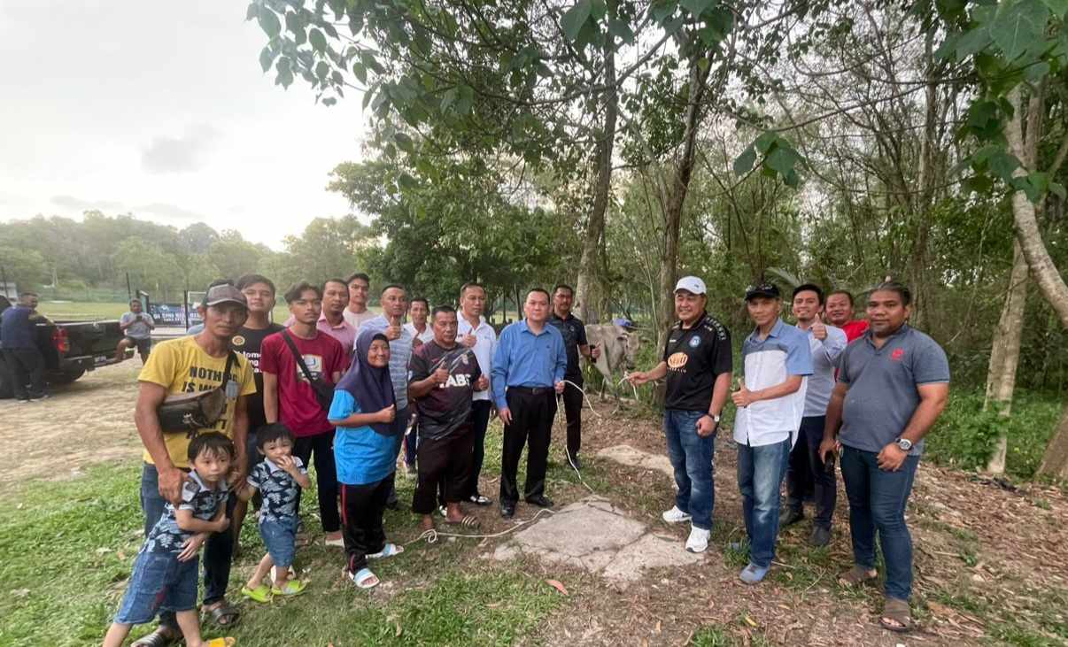 Kota Kinabalu : Pembantu Menteri Kewangan, Tan Lee Fatt semalam menyumbangkan seekor lembu kepada Tunas Asas Bola Sepak (TABS) Sabah Persatuan Bola Sepak Sabah (SAFA) Bandaraya.