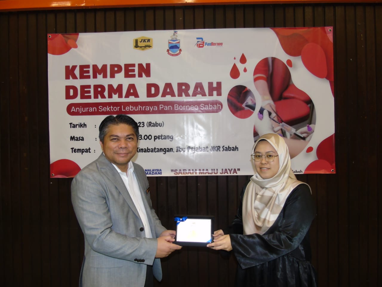 Kota Kinabalu : Jabatan Kerja Raya (JKR) Sabah di bawah Sektor Lebuhraya Pan Borneo (LPB) Sabah berkolaborasi dengan Hospital Wanita dan Kanak-Kanak Sabah (HWKKS) hari ini menganjurkan Kempen Derma Darah.