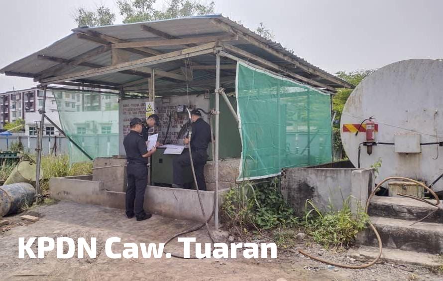 (KPDN) Cawangan Tuaran telah merampas barang kawalan yang disyaki minyak diesel bersubsidi dalam operasi ‘Ops TIRIS’ di sebuah stor tapak pembinaan di Rugading di sini pada 28 Julai 2023.