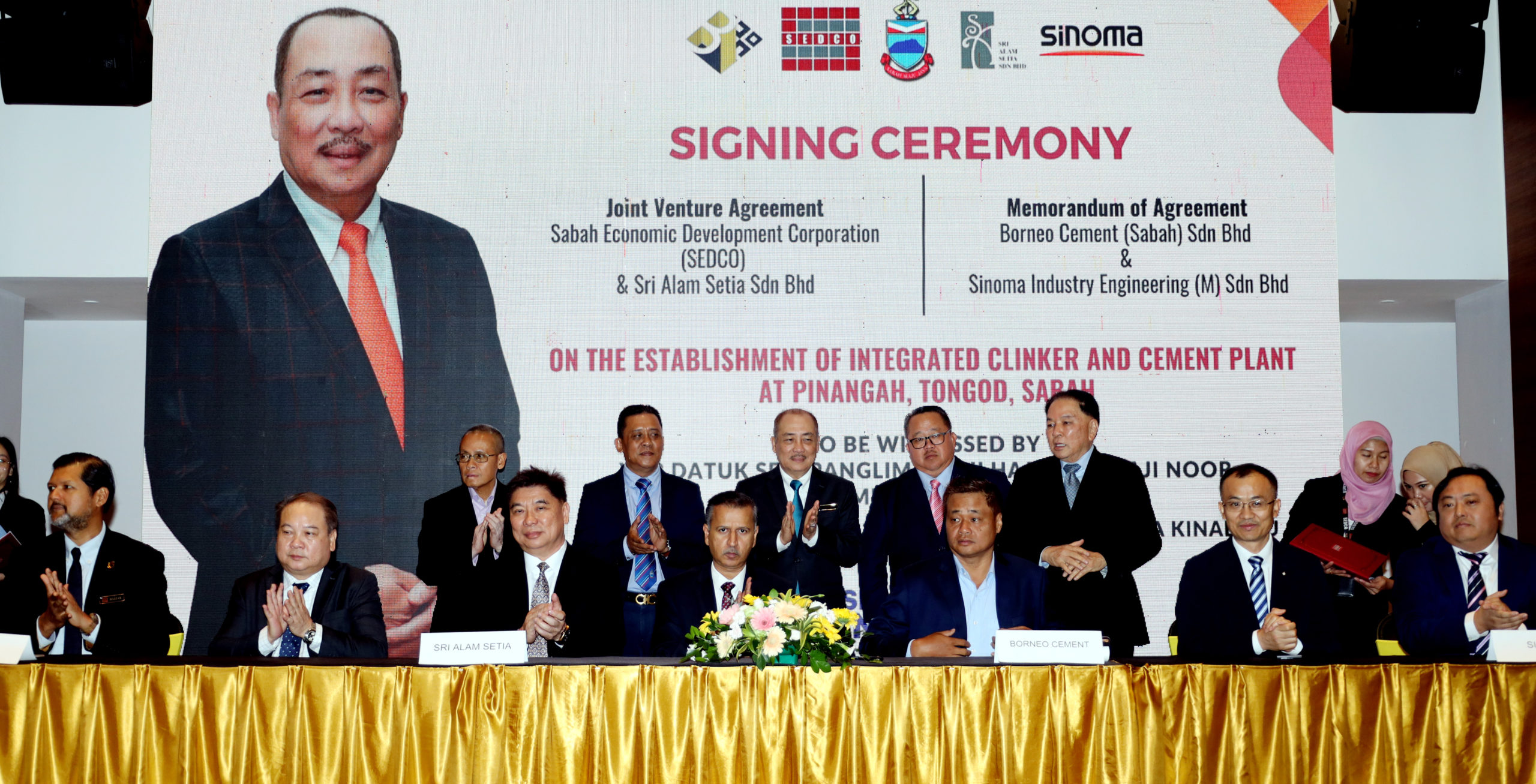 KOTA KINABALU: Sebuah loji klinker dan simen bersepadu akan dibina di Pinangah, Tongod, berikutan Perjanjian Usahasama antara SEDCO dan Sri Alam Setia Sdn Bhd yang akan menyaksikan penubuhan Borneo Cement (Sabah) Sdn Bhd untuk menerajui pembangunan.