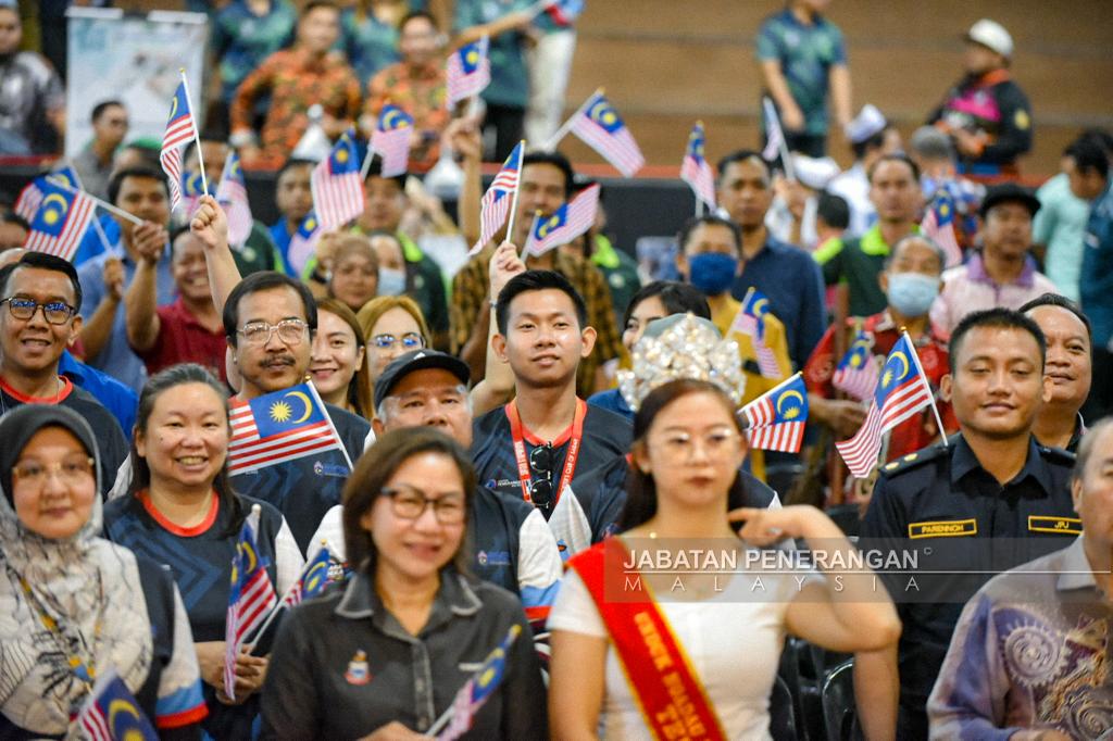 Beliau turut menyaksikan penyerahan Jalur Gemilang kepada wakil jabatan dan agensi kerajaan negeri serta pusat yang disempurnakan oleh Pengarah Penerangan Negeri Sabah, Jainisah Mohd Noor.