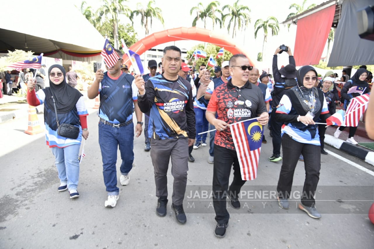 Lawas : Peserta konvoi yang menyertai Kembara Merdeka Jalur Gemilang (KMJG) sempena sambutan Bulan Kebangsaan tahun ini berpeluang untuk turut sama memeriahkan program ‘Lawas Asian Floating Market Festival 2023’ semalam.