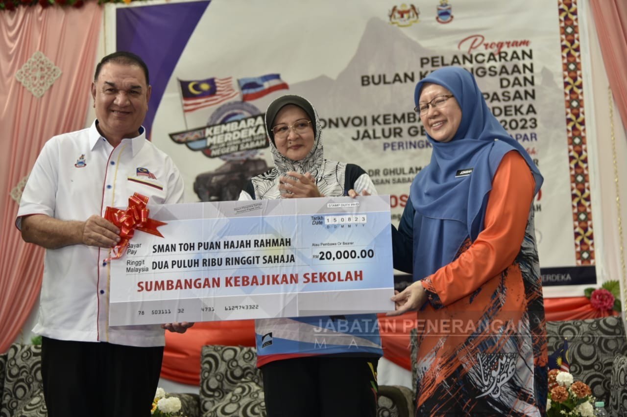 Pada majlis tersebut, Ghulam menyampaikan sumbangan RM20,000 kepada Persatuan Ibu Bapa dan Guru (PIBG) serta menyerahkan peralatan lengkap sukan bola tampar dan ping pong daripada Pejabat Belia dan Sukan Papar kepada Pengetua SMAN Toh Puan Hajah Rahmah, Jonisah Harimin.