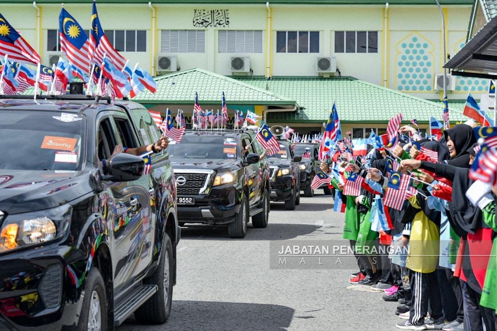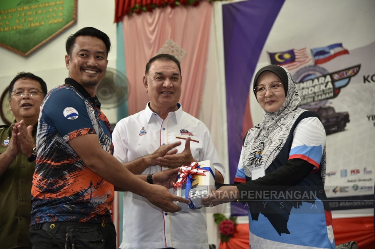 Beliau turut menyaksikan acara penyerahan Jalur Gemilang oleh Jainisah kepada ketua-ketua jabatan negeri dan persekutuan Daerah Papar.