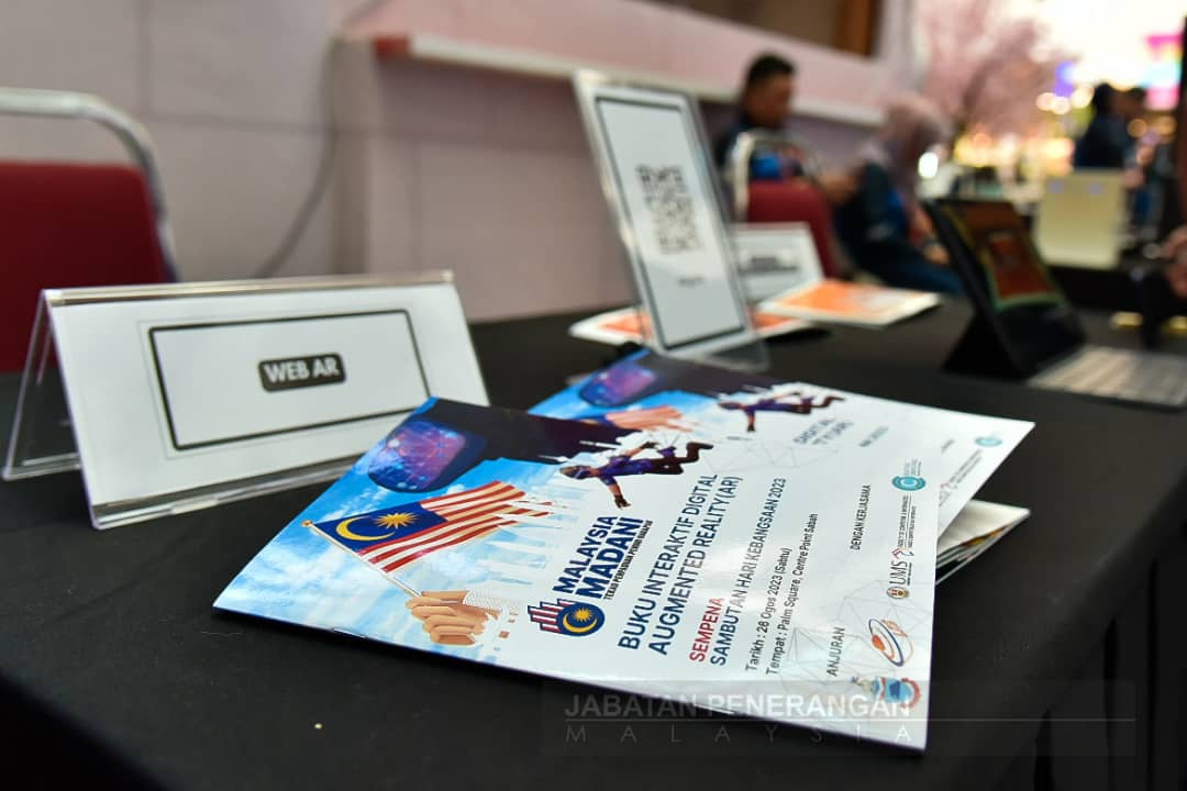 Kota Kinabalu : Sembilan warga Universiti Malaysia Sabah (UMS) berjaya menghasilkan Buku Interaktif Digital Augmented Reality (AR) sempena Sambutan Hari Kebangsaan 2023.