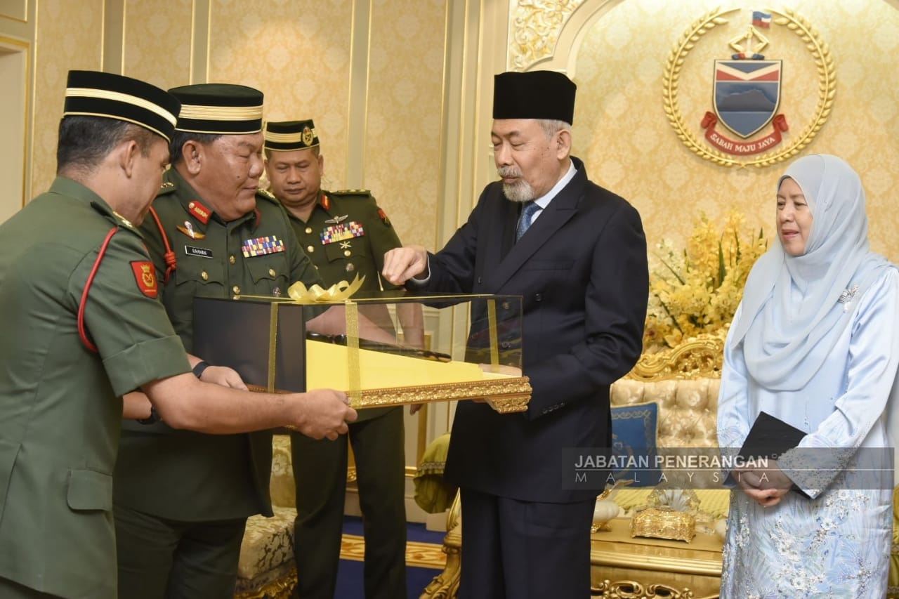 “Saya mengucapkan berbanyak terima kasih kepada Tuan Yang Terutama Tun dan kerajaan negeri atas bantuan-bantuan yang diberikan kepada pihak tentera antaranya penyediaan tapak tanah bagi pembinaan pos-pos keselamatan tentera di sepanjang sempadan, kerjasama antara kerajaan negeri termasuk PDRM menjadikan negeri ini sentiasa terjaga dari ancaman luar mahupun dalaman,” katanya.