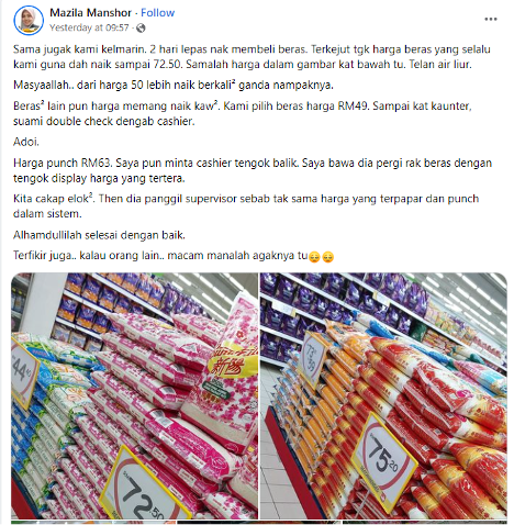 Mulai 1 September 2023, Padiberas Nasional Bhd (BERNAS) telah menyelaraskan harga jualan beras putih import seluruh negara daripada RM2,350 satu tan kepada RM3,200 satu tan. Bezanya adalah RM850, tinggi sangat tu. BERNAS sebagai pengimport tunggal beras di Malaysia memberikan alasan mahu seimbangkan dengan harga antarabangsa.