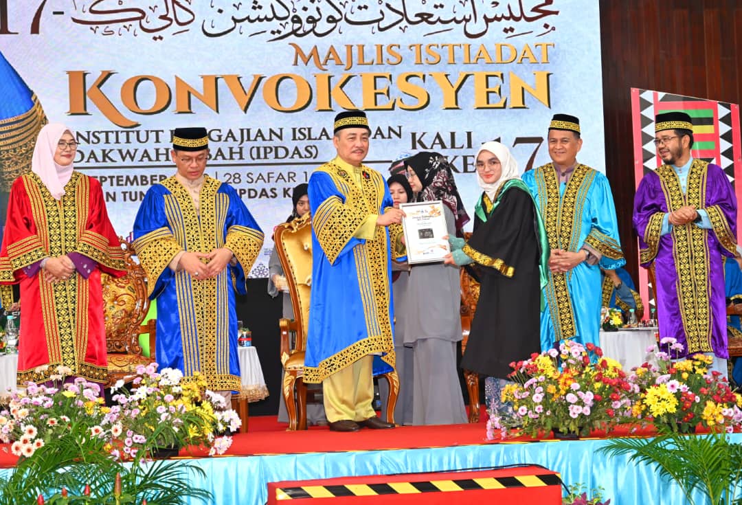 “Ia merupakan satu peluang besar untuk IPDAS menerokai ilmu pendigitalan yang digabungkan dengan ilmu teras dalam melahirkan anak bangsa yang berketrampilan dan memenuhi keperluan hari ini”, katanya pada Majlis Istiadat Konvokesyen IPDAS Kali Ke-17 di Dewan Tun Sakaran institut itu di sini hari ini.