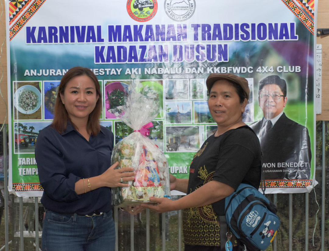 Hadiah pemenang pertandingan masakan tradisional disampaikan oleh Datin Connie Parantis isteri kepada Datuk Ewon Benedick, Menteri Pembangunan Usahawan dan Koperasi merangkap ADUN Kadamaian.