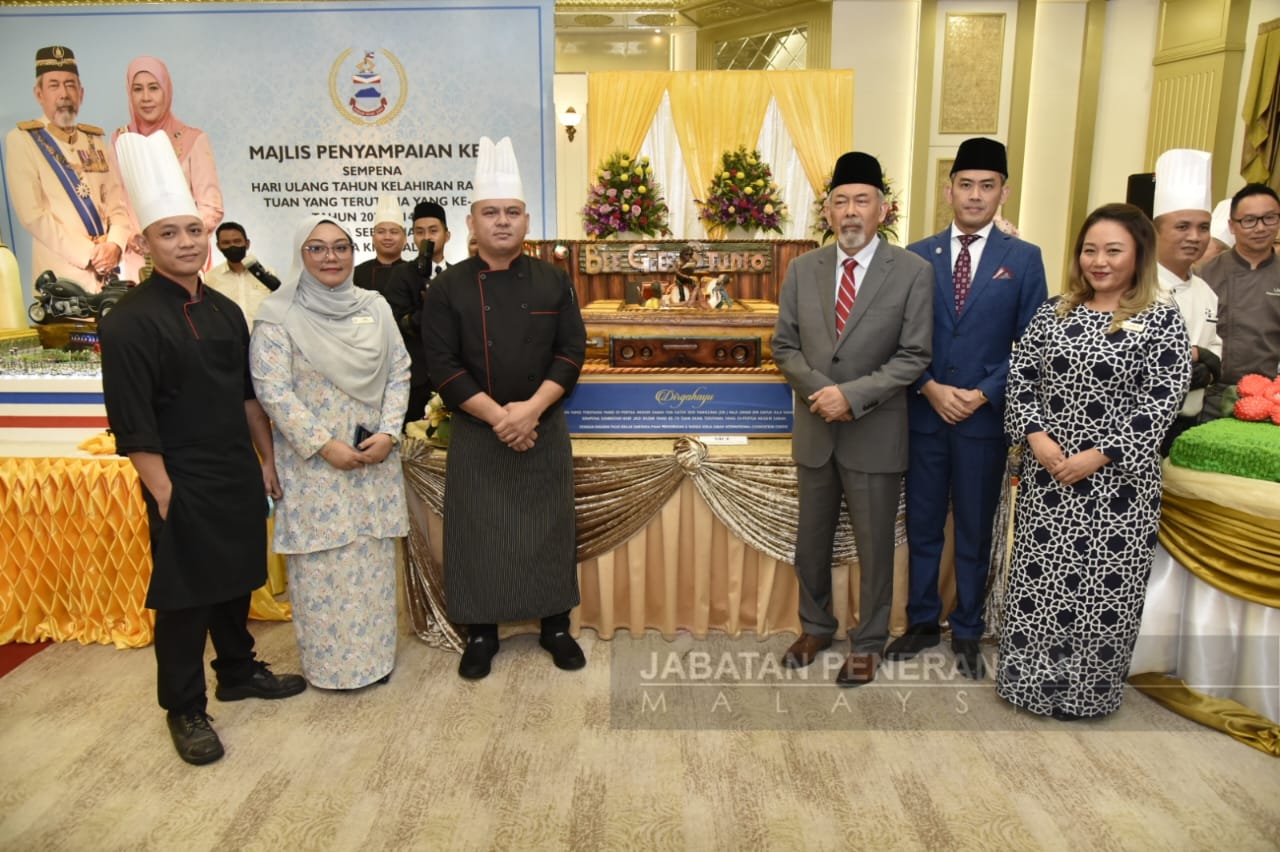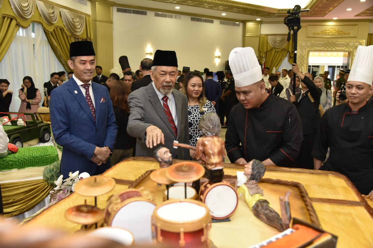 Hadir bersama bagi menyaksikan sendiri kek yang dipersembahkan ialah Isteri Yang di-Pertua Negeri, Toh Puan Norlidah R.M Jasni.