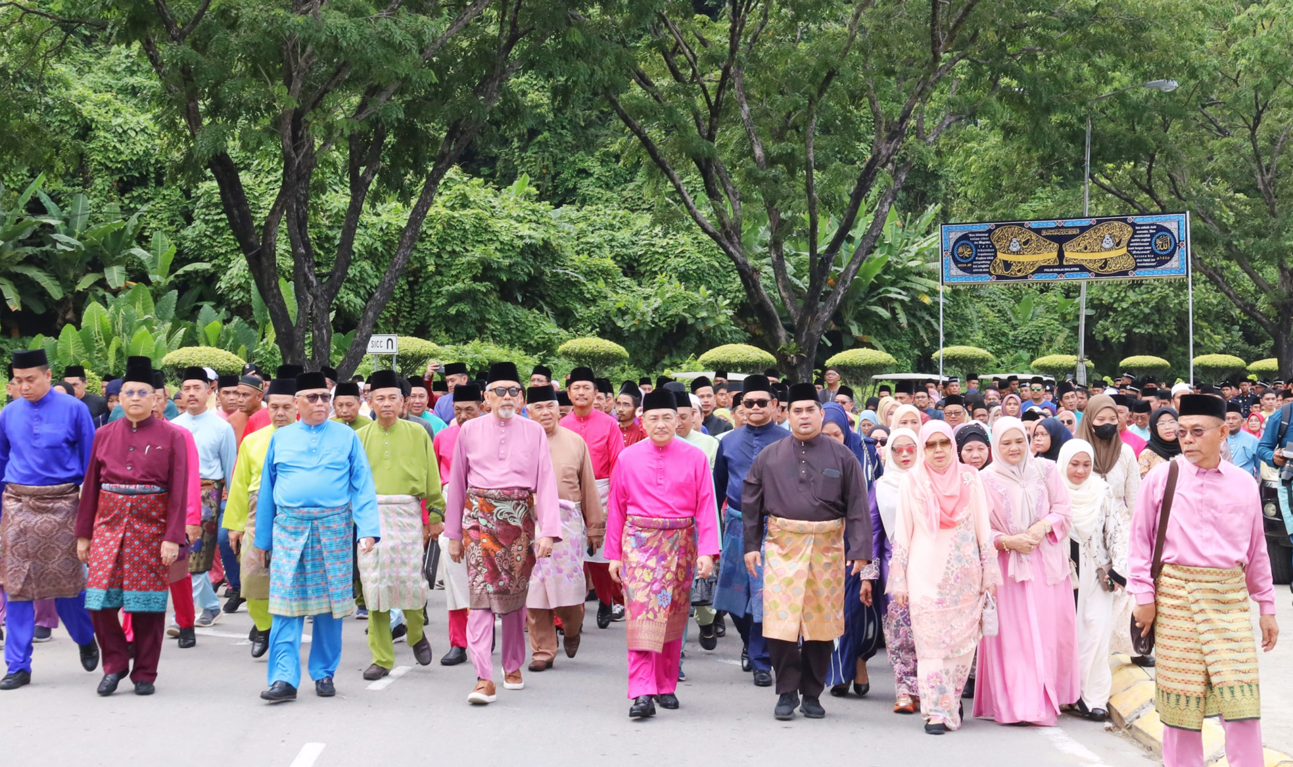 Terdahulu, Hajiji bersama Yang di-Pertua Negeri, Tun Juhar Mahiruddin dan ribuan umat Islam menyertai perarakan dari Padang Merdeka ke SICC.