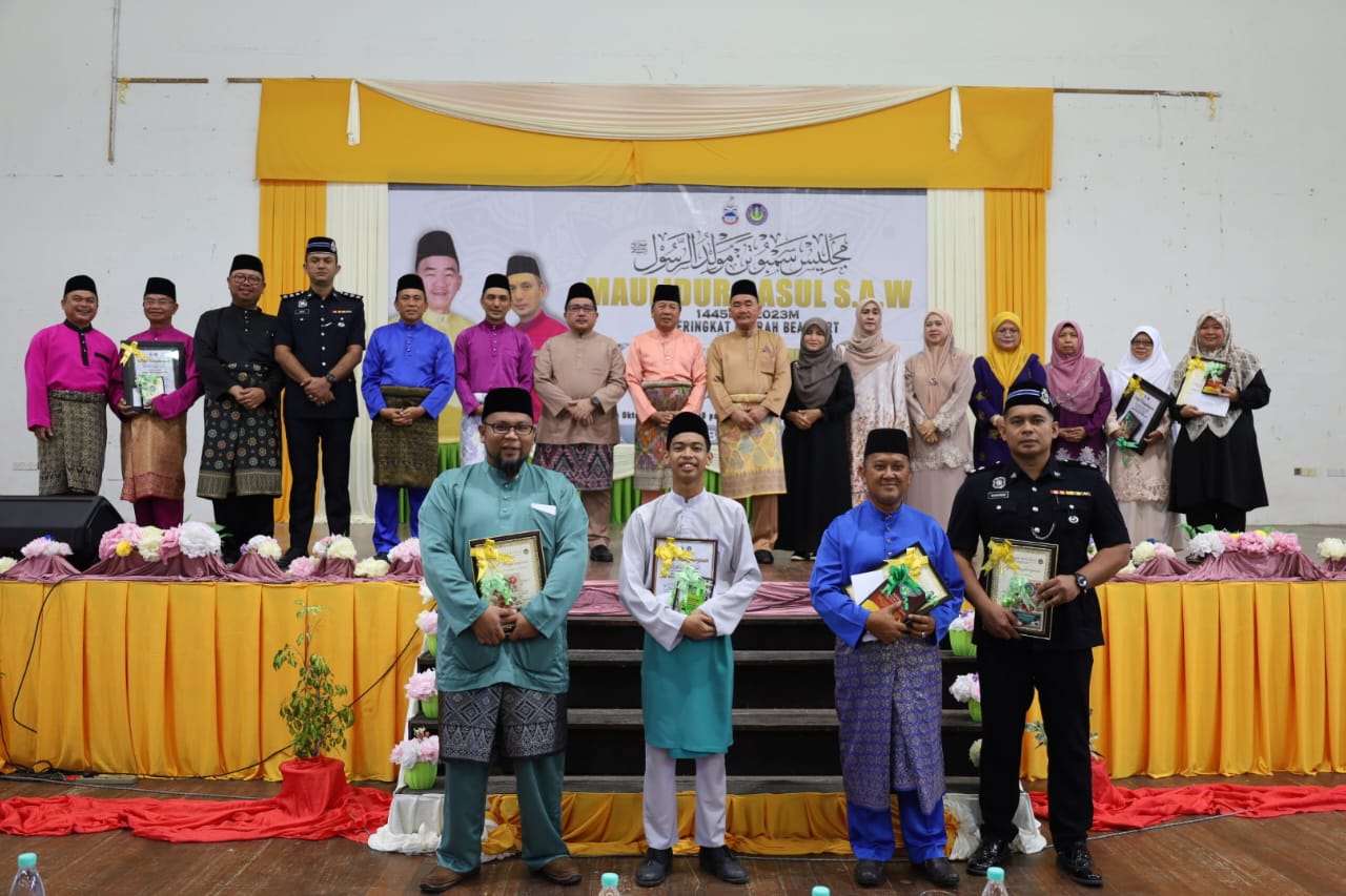Beaufort : Pelajar tingkatan empat Sekolah Menengah Agama Negeri (SMAN) Beaufort, Abdul Wafi Abdul Amir,16, diumum sebagai penerima Anugerah Khas Maulidur Rasul kategori pelajar pada majlis sambutan Maulidur Rasul peringkat daerah Beaufort di sini hari ini.