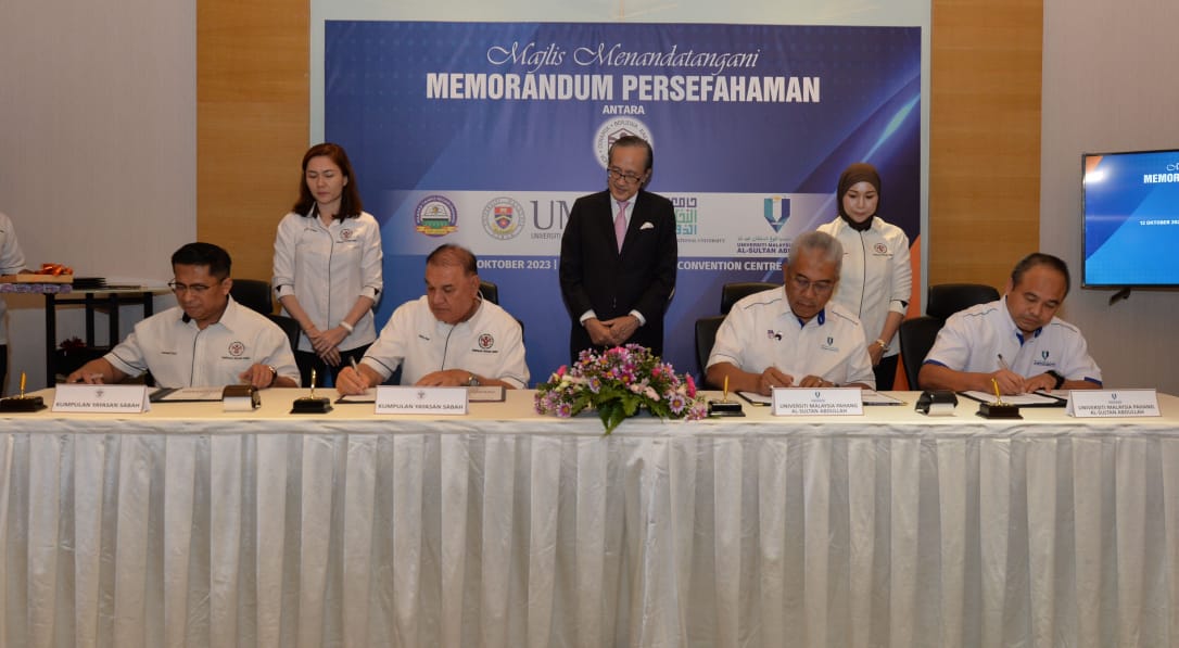 Kota Kinabalu : Kumpulan Yayasan Sabah (KYS) menandatangani Memorandum Persefahaman (MoU) bersama beberapa Universiti Awam (UA) dan swasta termasuk Maahad Tahfiz berkaitan tajaan pendidikan untuk pelajar Sabah.