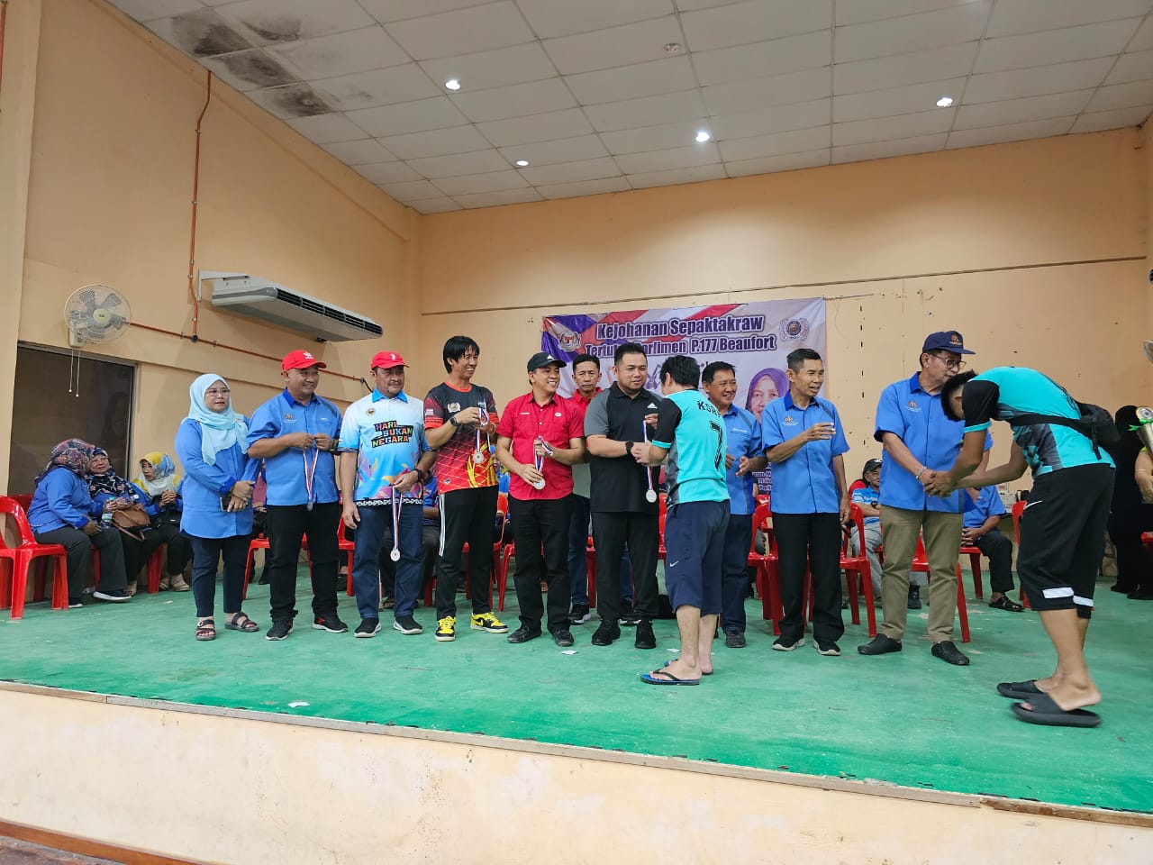 Kejohanan yang diadakan selama dua hari itu berakhir Ahad lalu itu adalah anjuran bersama Persatuan Sepak Takraw daerah Kuala Penyu dan Pusat Khidmat Parlimen Beaufort.