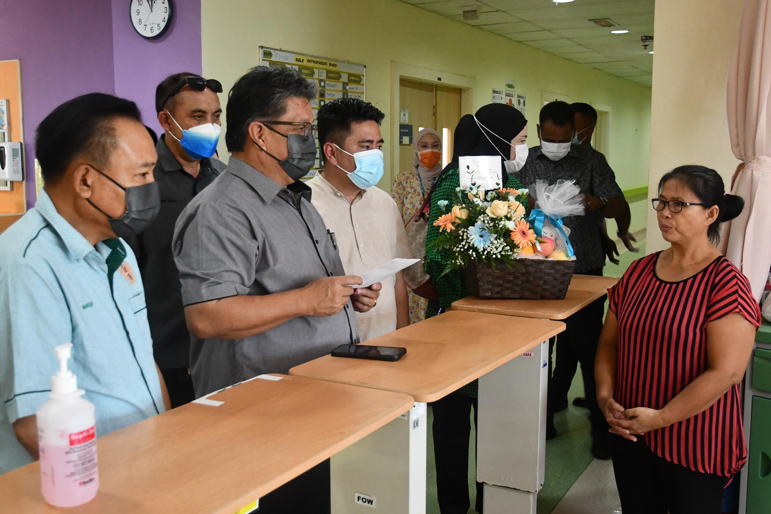 Kota Kinabalu : Menteri Belia dan Sukan Sabah Datuk Ellron Angin semalam meluangkan masa melawat atlet Para renang Jaflee Jikol yang kini sedang menjalani rawatan di Hospital Queen Elizabeth (HQE) 1 akibat kanser.