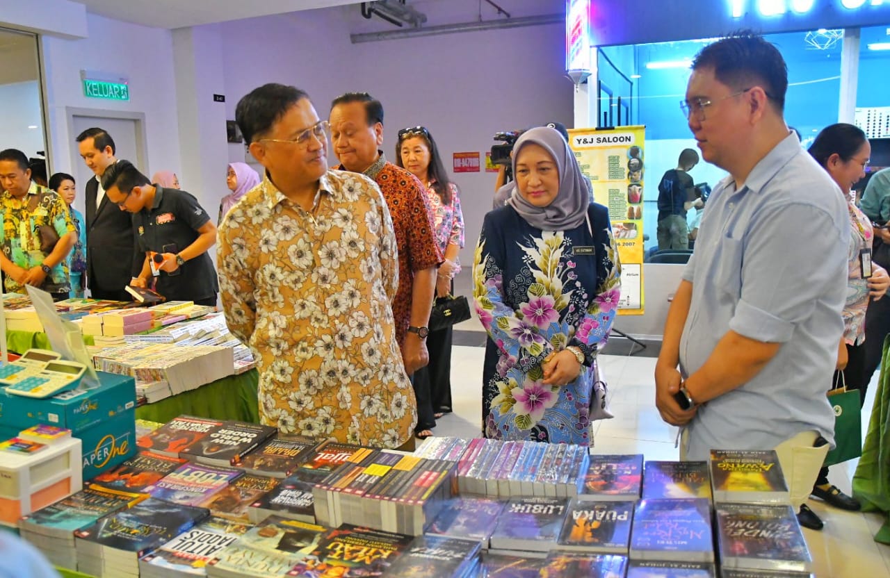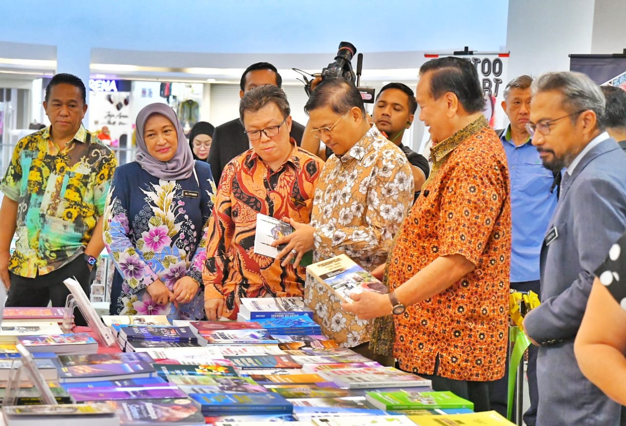 “Implikasinya dapat dilihat apabila beberapa kedai buku utama di Malaysia menamatkan operasi. Justeru, dengan adanya Pesta Buku sabah pada hari ini diharap dapat memberi peluang kepada para penerbit untuk memasarkan dan mempromosikan buku-buku mereka di samping menerapkan budaya membaca dalam masyarakat,” katanya. – SABAH MEDIA / FOTO PEJABAT MENTERI KSTI